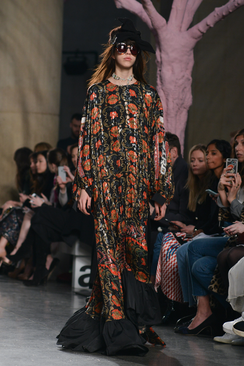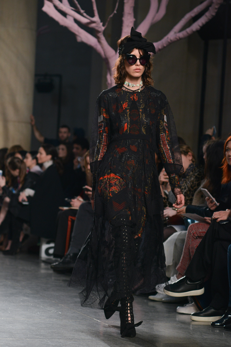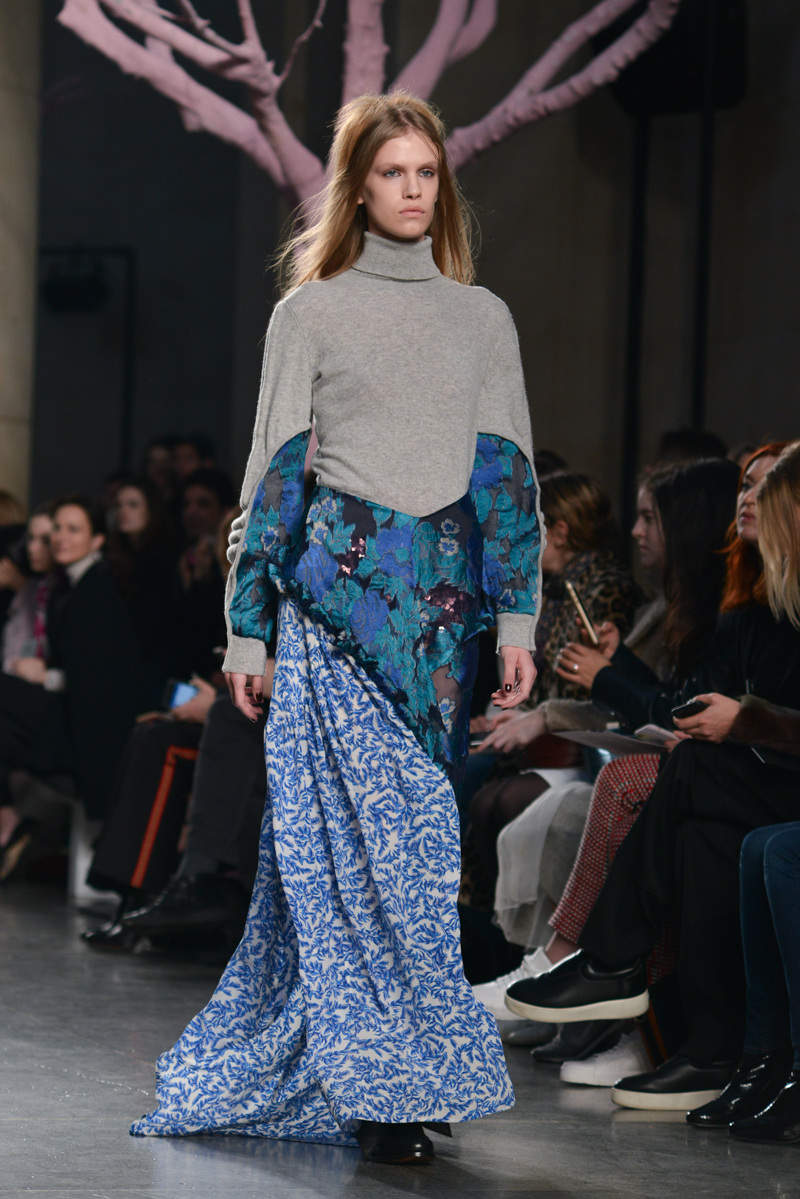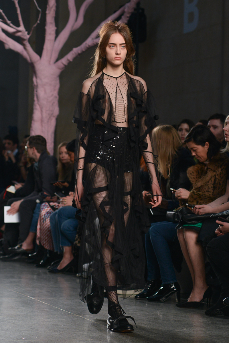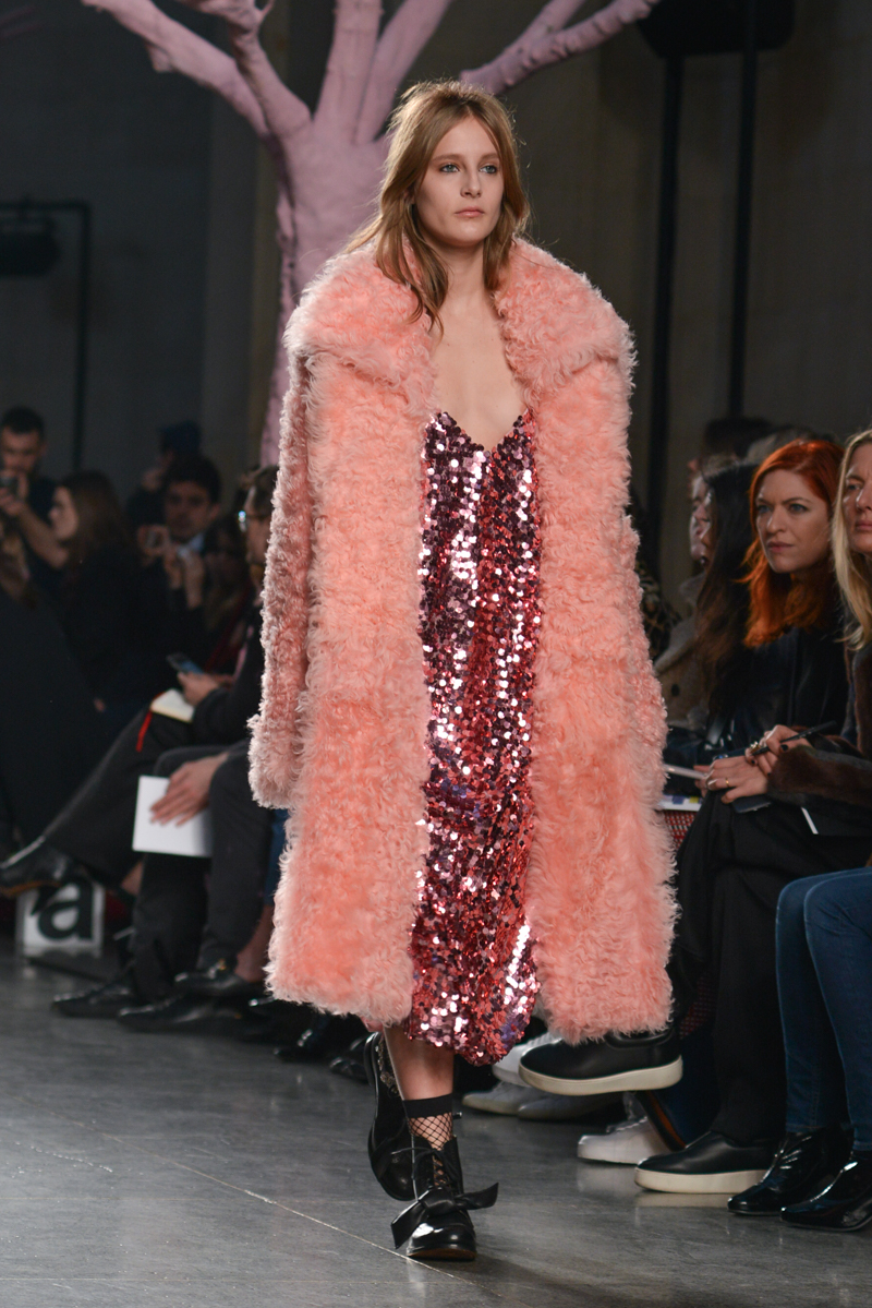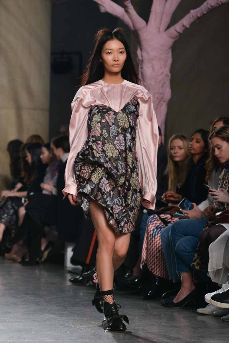 Preen by Thornton Bregazzi presented a glamorous autumn/winter 2016 collection at Topshop Show Space for London Fashion Week. The new looks were dark florals and layered fabrics. Here are our images from the show.