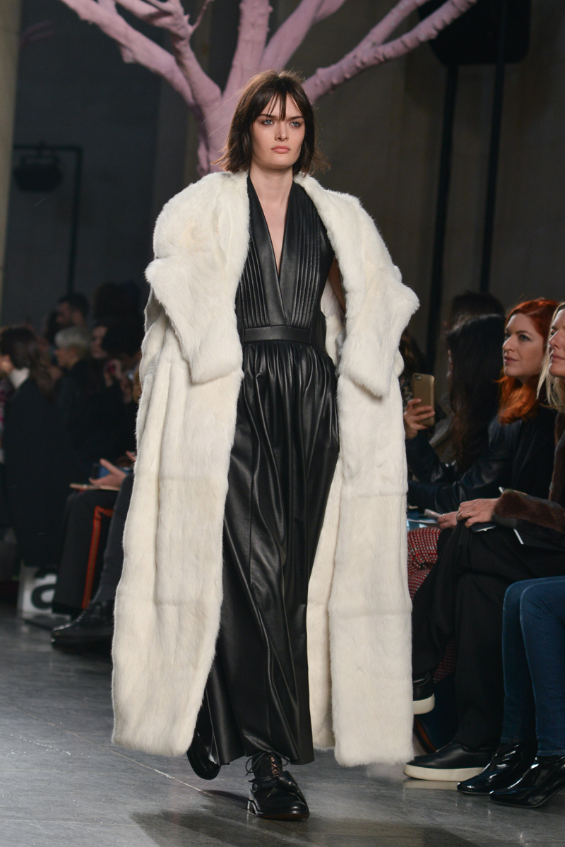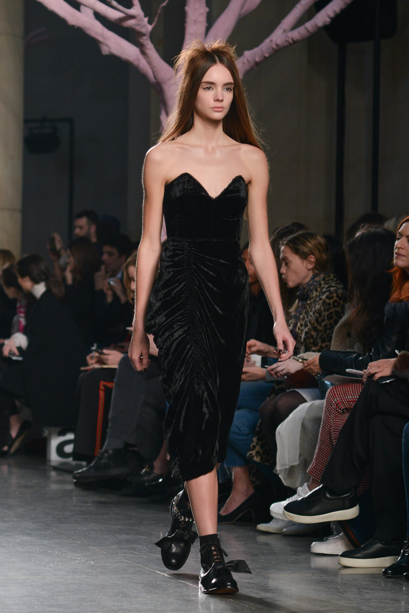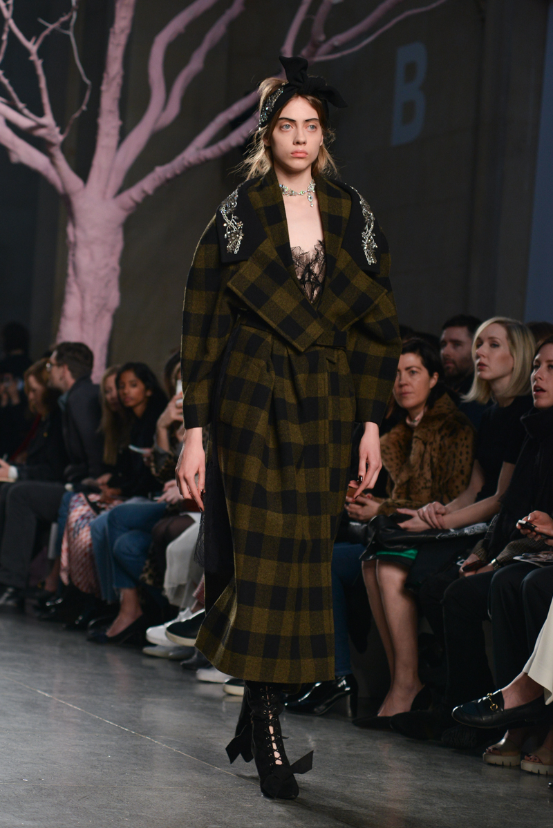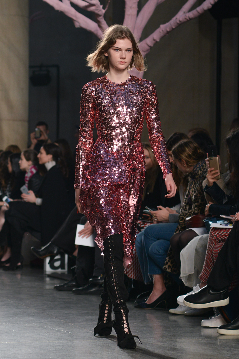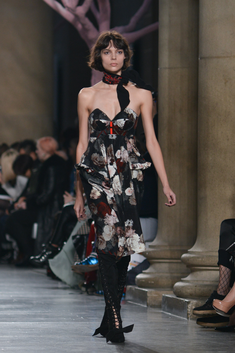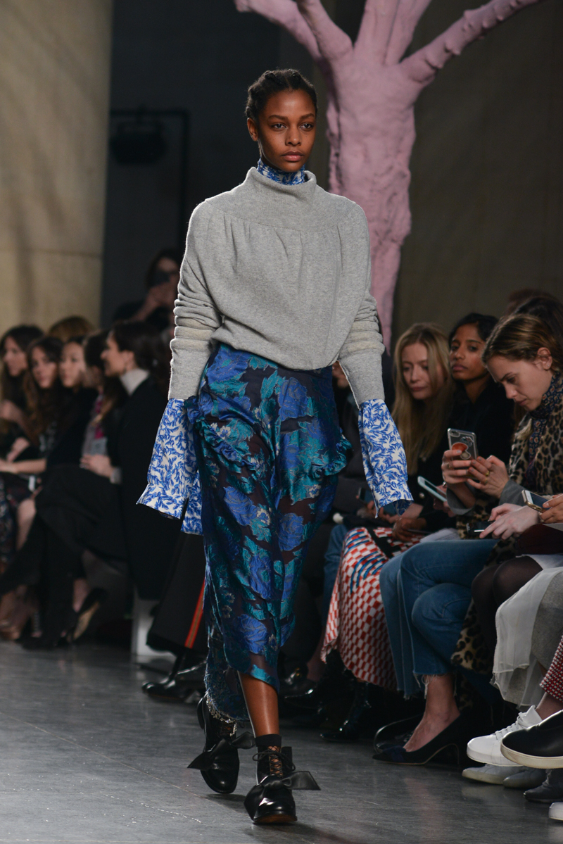 Preen by Thornton Bregazzi presented a glamorous autumn/winter 2016 collection at Topshop Show Space for London Fashion Week. The new looks were dark florals and layered fabrics. Here are our images from the show.