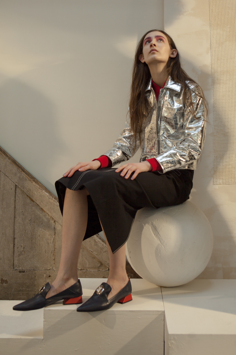 The entire collection was complemented by sculptural footwear and accessories, made in collaboration with Korean brand Yuul Yie and London-based jewellery label URIBE.