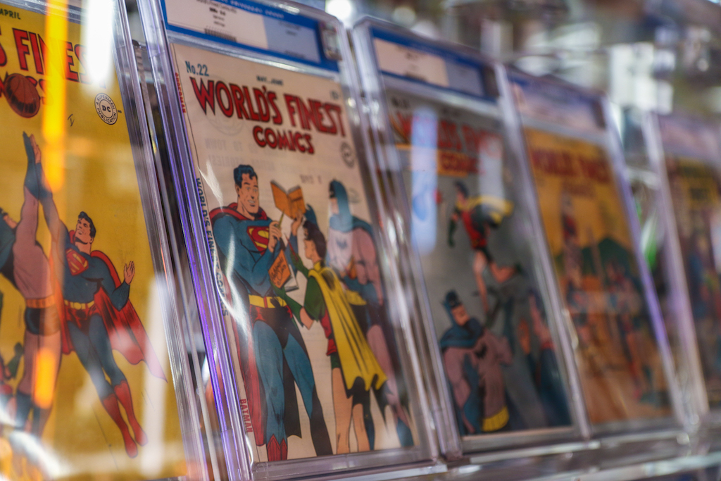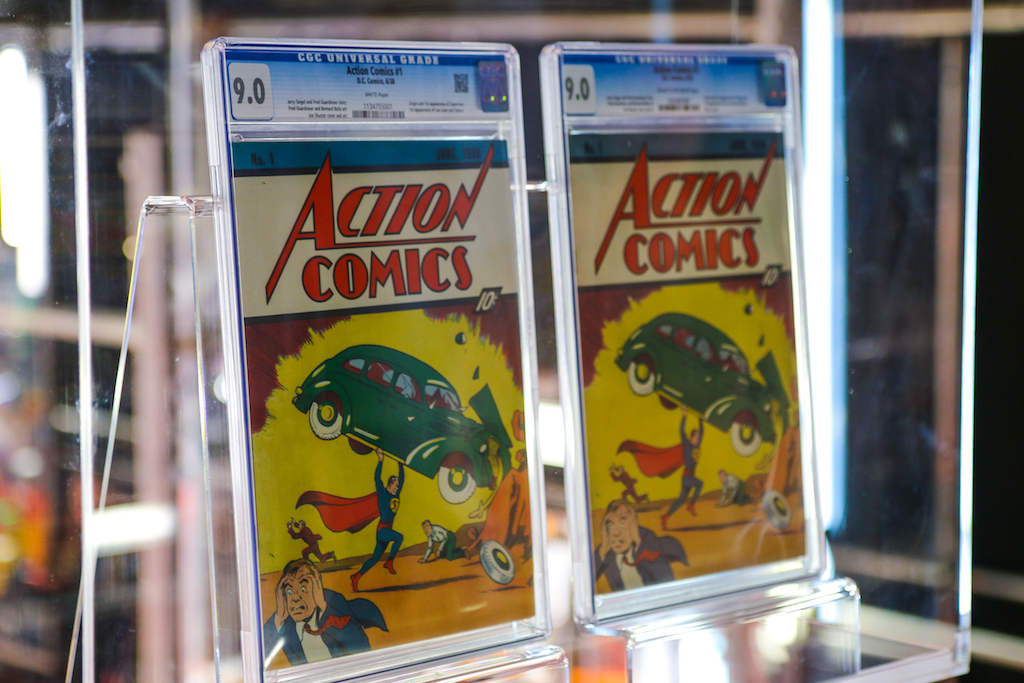 Many of the comics on display are the finest known to exist. Highlights include the highest graded copy of Action Comics No 1, the first appearance of Superman. This title, widely considered the Holy Grail of comics, launched the superhero genre, which is now a multi-billion dollar industry spanning movies, television, merchandise and apps. This particular copy has rarely changed hands since its publication in 1938 and has perfect-white pages (thanks to its original owner storing it in a cedar chest in the mountains of West Virginia).