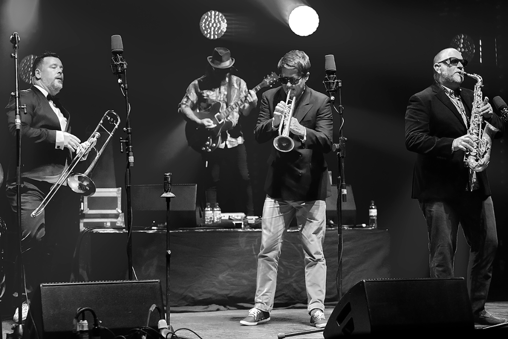 The band appeal to all ages: at the front a seventy-year-old man dances as if he is twenty. But no one can match the vitality of multi-instrumentalist Joe “Hopepa” Lindsay, who is greeted with cheers of “we love you!” and “‘you’re mad!” as he dances his heart out, wearing sparkly hotpants, a vest top and purple tassels, which are forever getting caught in his trombone. His stage presence is exceptional, and he gives the audience exactly what they want. The crowd’s screams reverberate throughout the impressive venue as he leads the band back onstage for a thirty-minute encore. Never has there been a man so proud to shake his booty and have fun. Hopepa embodies the band’s spirit; they are carefree, talented and, above all, a joy to watch.