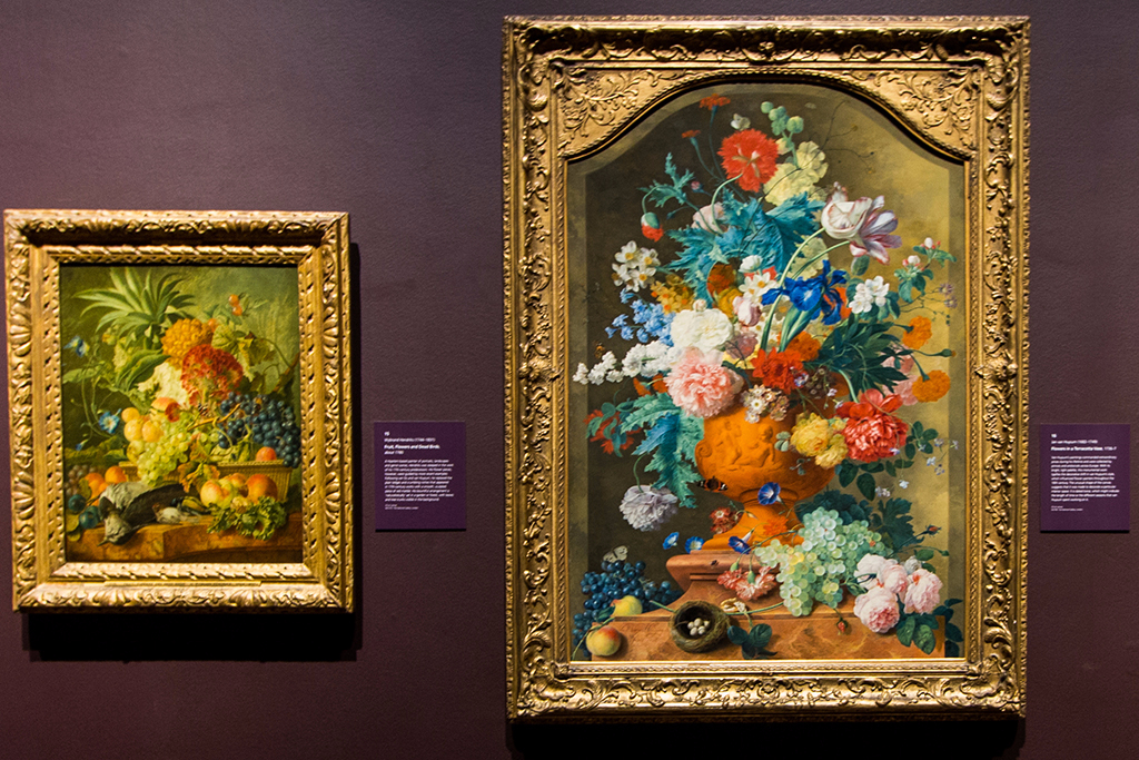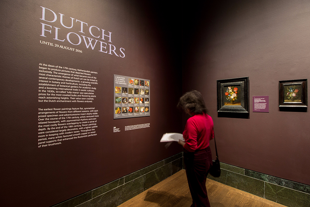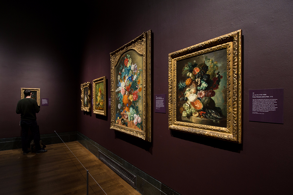 While the subject of the exhibition may initially appear very specific, the show also points to the wider significance of these flower paintings. The chronological progression of paintings around the room charts the evolution of composition and oil painting techniques in the Netherlands, and effectively demonstrates changing tastes and fashions during this period.