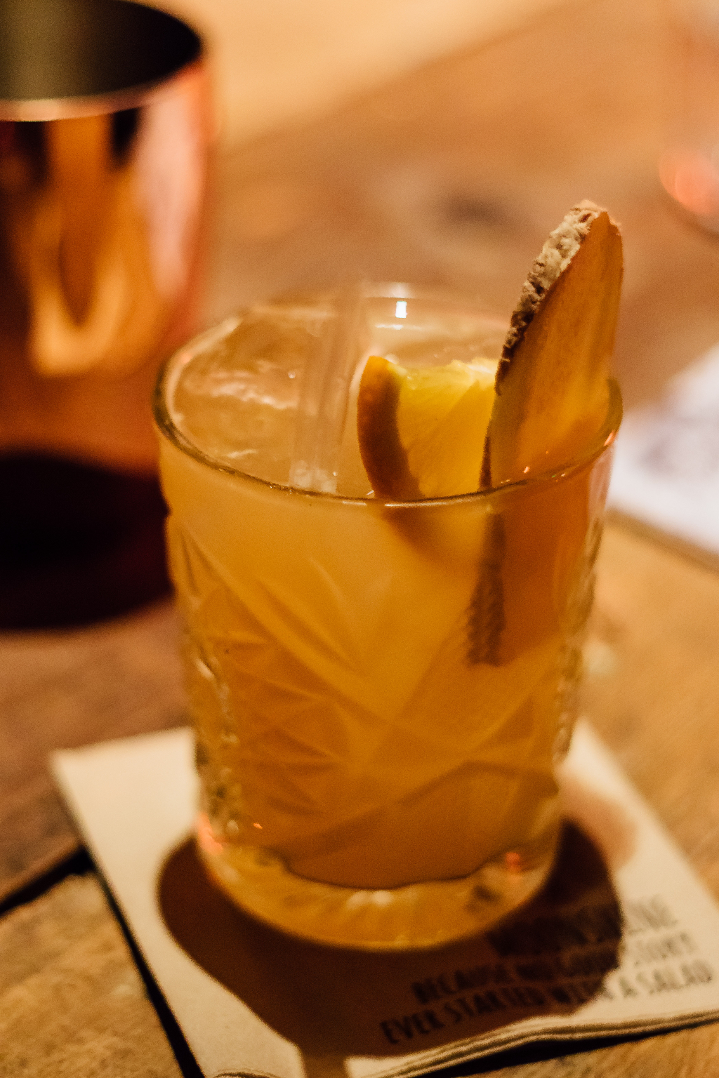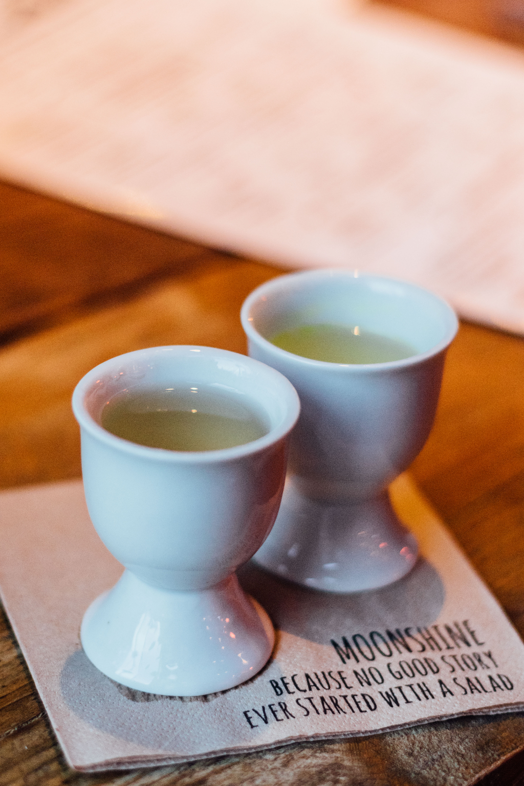 We began the evening with a couple of different cocktails. An excellent Devil Made Me Do It was a souped-up Old Fashioned with the addition of ginger and lemon juice providing acidity and warmth. Moonshine brewed specifically for the restaurant, was a nice touch, although paired with a shot of warm chicken stock (definitely not a consommé as advertised), the word absurd certainly seemed appropriate. However, this was one of only a couple of missteps the whole evening.