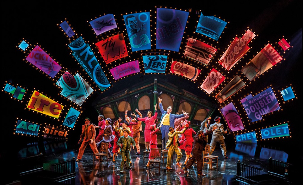 The quartet of protagonists deliver outstanding performances throughout and the cast at large doesn’t miss a beat. The first half of the show becomes progressively more engaging as the plot unravels, while the second half starts with a bang and stays on a high. If all else fails to win the audience over, the lively number Sit Down, You’re Rocking the Boat is sure to have everyone moving towards the end. The set’s key feature is an arch of vividly coloured billboard signs bearing vintage logos of famous commercial brands, framing the action while keeping alive a feeling of nostalgia.