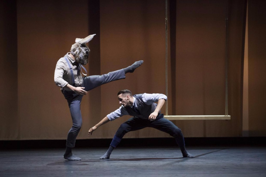 Choreographed by Swedish dancer and film-maker Pontus Lidberg and the critically acclaimed Javier de Frutos, Life combines haunting, original live music with a tortured tale. Performed by a ten-strong all-male group, locked bodies are juxtaposed with breathless vaults. The first half (choreographed by Lidberg) is reminiscent of Wonderland, where dancers, adorned in rabbit masks, reflect the perils of temptation, teasing with pulls and pushes. Dancing in pairs, every part of the stage is covered in frenetic movement, signalling the battle of holding on and letting go of memories. In contrast, their collective weightless lifts are as delicate as the orchestral score, with the idea of escapism being re-invented in new ways. The sudden impacts involved in life and death are beautifully illustrated with stunning twists and twirls delivered with equal force. Lidberg’s choreography demands personal interpretation, like life itself.