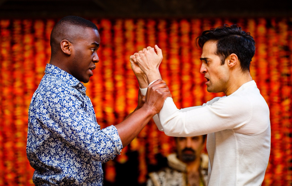 How then, is the “wonder” achieved in the play? The clash between the modern lovers and the fairy world of Shakespeare’s time emerges in the set: the Globe is decorated with bright lights and huge balloons. It is a living dialogue with the past. A bhangra-like beat, with sitar sounds on top, often accompanies the action and adds to the mysticism and cultural hybridity of the performance; actors often descend from the rafters of the theatre. As the evening progresses and the play delves deeper into enchanted love affairs, the natural light slides into the rich golds, purples and reds of the theatre lighting, which is perhaps one of the most enchanting aspects of the production.