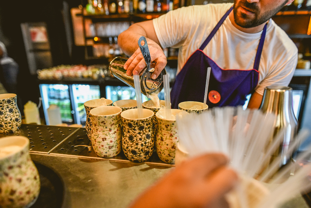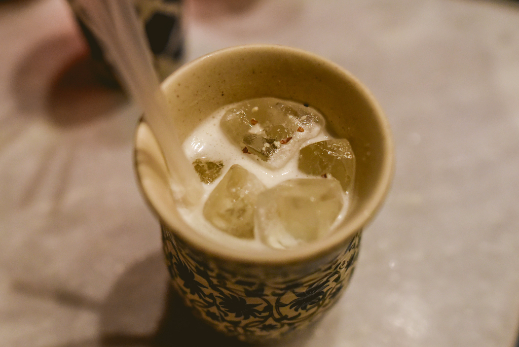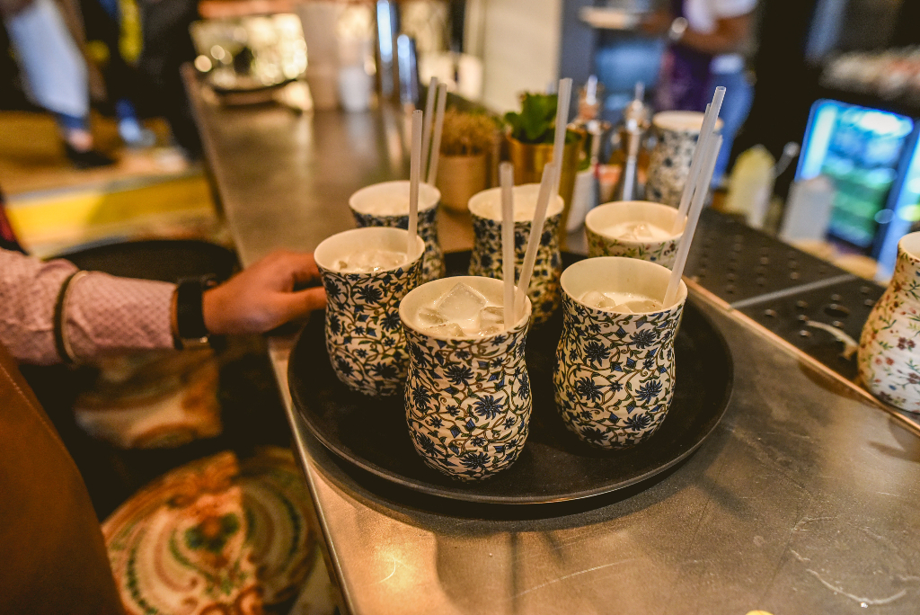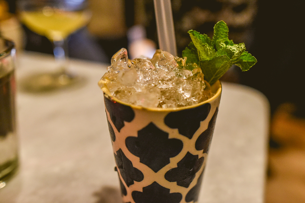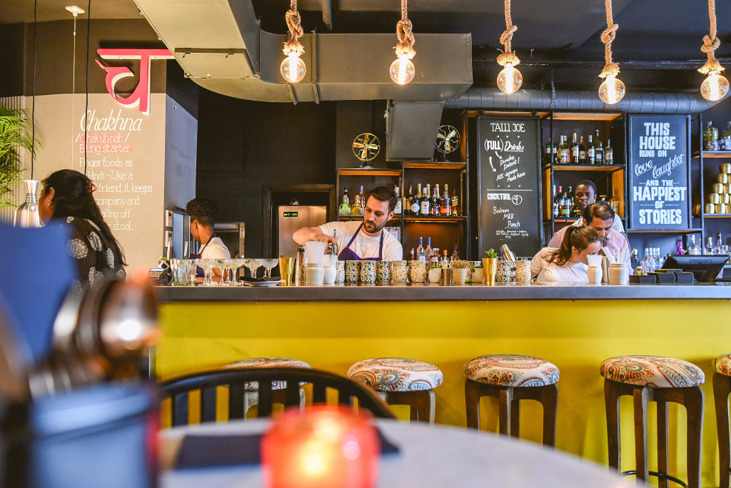 As promised, the plates are “half plates”, an important semantic distinction from “small plates”, which suggests an unsatisfied shortfall. Instead, the prices encourage a broad tapas-style selection, and what the result lacks in size it makes up for in taste. Devilled Quails Eggs erupt with rounded flavours, and are served with a rich tadka mayo. The truffle-glazed cottage cheese naan packs a razor-sharp kick, soothed by a delicate mint sauce, and the Stuffed Karela Melon (filled with a lentil and fennel salad) is a feast of bitter and sour, condensed into a single bite. Best of all is the Kale Chaat, where the earthiness of crispy kale and potato are brought to life by the velvety sweetness of yogurt and pomegranate seeds.It’s heartening to discover that Taneja hasn’t dumbed down the food from his former restaurant, but has instead focused the flavours into smaller dishes, incorporating more alternative cooking styles from the less explored corners of the subcontinent. And with newfound freedom he has also broadened these ideas into a mixologist mindset, bringing food and drink together thoughtfully. On the cocktail side, the medicinally-reared Madras Gimlet combines turmeric-infused gin, lime and sugar syrup for an acidic finish – originally a combination used to treat scurvy. The Baba Budan is a hearty mixture of aged rum, Kaapi (coffee), palm sugar and aromatic bitters, but the pick of the bunch is the Badnam Milk Punch. Served in a receptacle that resembles an ancient holy vase, the Badnam is a creamy fusion of whisky, almond and cashew nut puree, saffron syrup and milk.