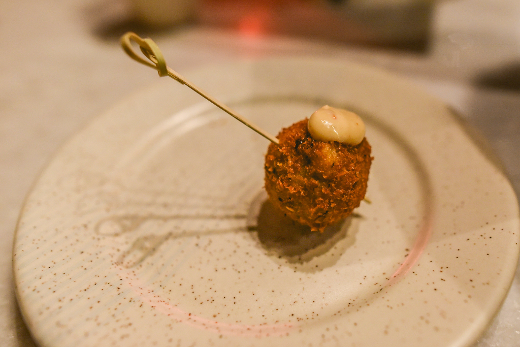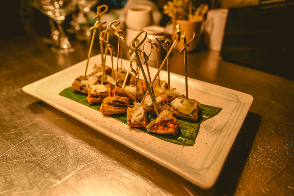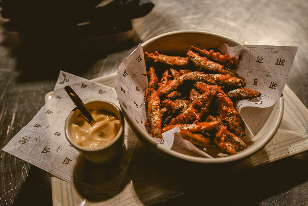 Escaping the discipline of straight-up dining, Talli Joe has created an atmosphere where food and drinks complement the social experience, as opposed to creating it. It gives off the impression of a cocktail bar with snacks, but snacks that exceed the usual careless finger food, transgressing into a realm of finger food that commands diners’ attention. The tag-line of “half plates and full drinks” hangs over the restaurant’s entrance, underneath the the Talli Joe logo that depicts a lion with wings; the “Talli” part of the name is Hindi for “tipsy and happy. At the back of the spacious 96-cover room reads a large quote: “Too fly to drunk… roared the lion”. Various other alcohol-related quotes adorn the pillars and walls of the room, hammering home a focus that flirts with overkill, only an Oliver Reed quote away from a tactfully marketed craft-beer-pushing gastro pub. But at least you know where you stand. On the plus side, each cocktail is served not only with a smile, but a passionately delivered backstory.