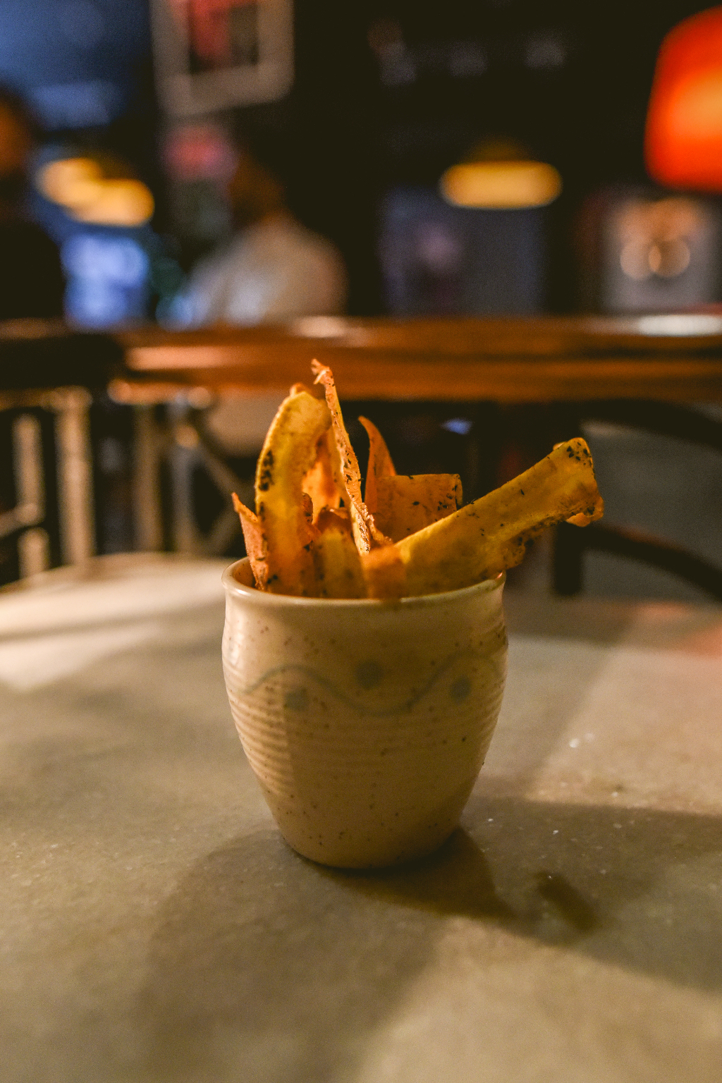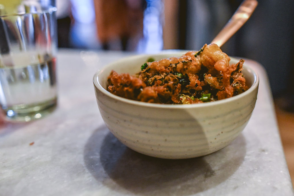 Aside from the wall quotes, the decor is refreshingly mellow. It’s inspired by the dive bars of India – or at least as close as a venue can get in Shaftesbury Avenue, which is rapidly becoming the nucleus of London’s food scene. There is a conflicting element to the authentic Indian feel, homely wicker and natural wood diluted somewhat by cliched hanging lamps and a wall-length lime-green sofa. This is a minor compromise in an ideology entirely welcome amidst a surrounding surplus of formal dining.