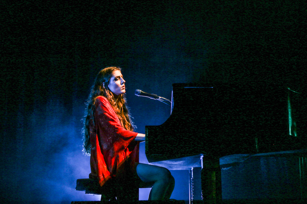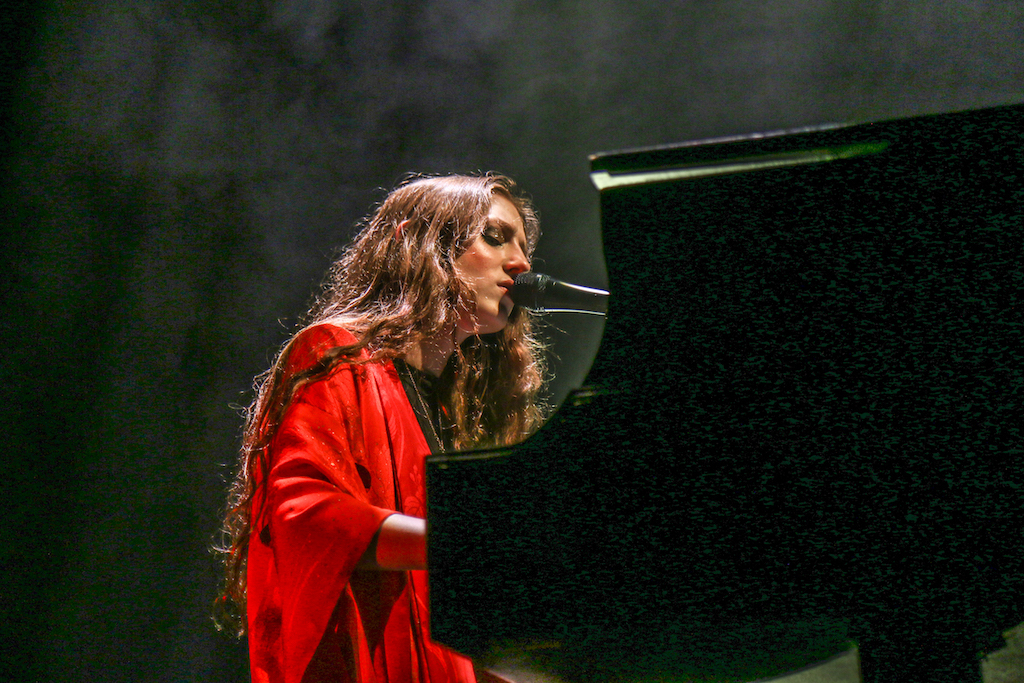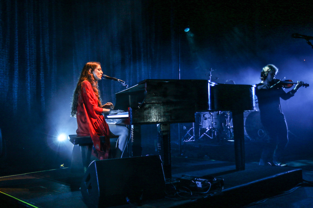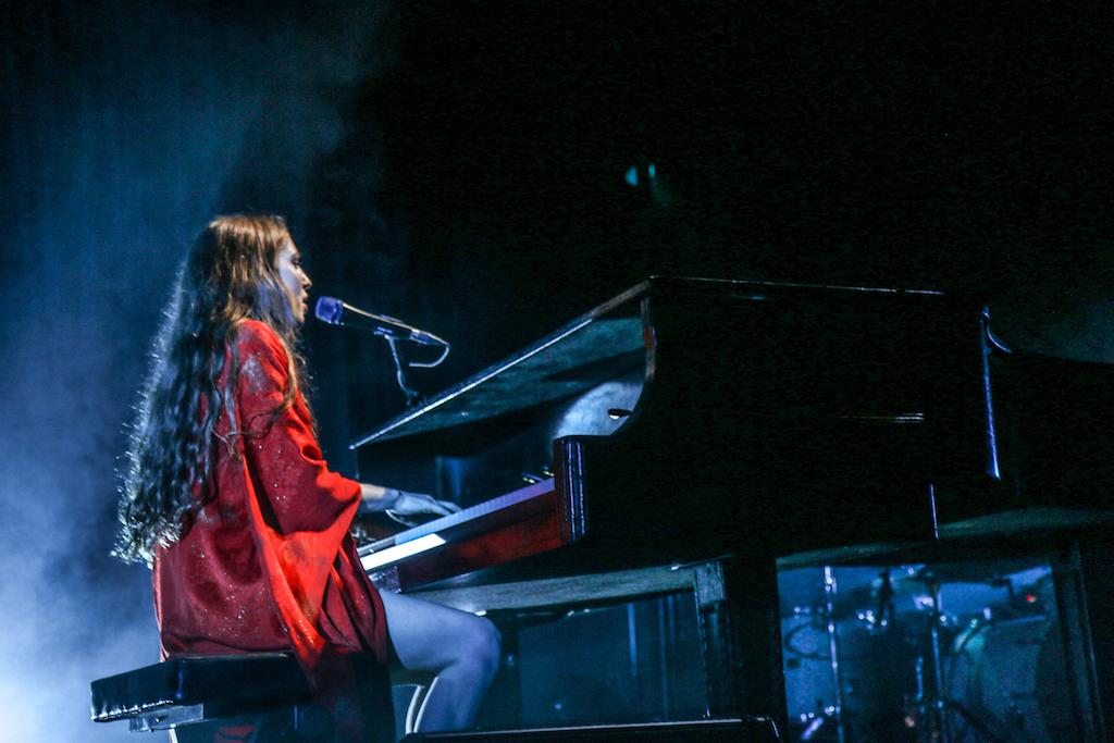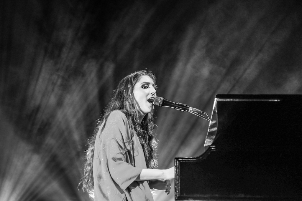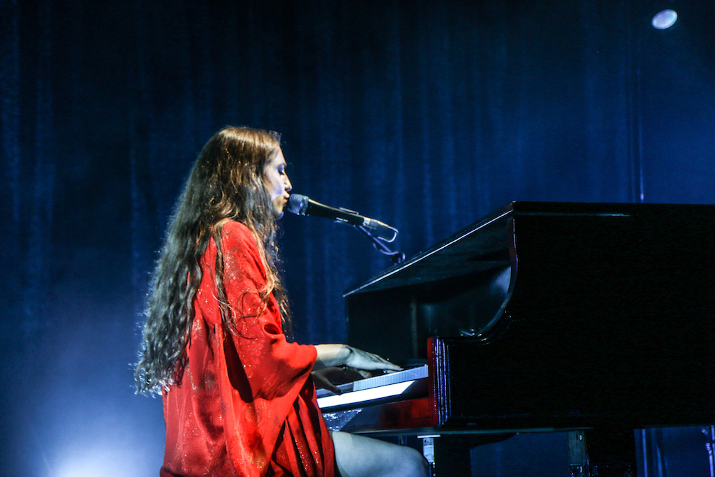Jasmine van den Bogaerde – the singer’s real name – soulfully howled her way through the set, mostly from the comfort of the grand piano that sat centre stage. Witnessing this young woman stand up, for the occasional song, seemed to be enough to make the crowd go wild: there are not many artist who have this power. It was a smooth, delicate and heartfelt performance, a very quiet and sincere “thank you” followed every song. It was a rather special atmosphere as the audience stood and swayed mesmerised by the other-worldly, angelic sounds filling the space.