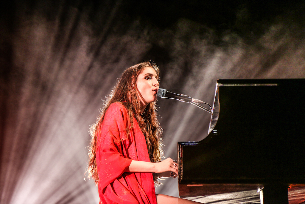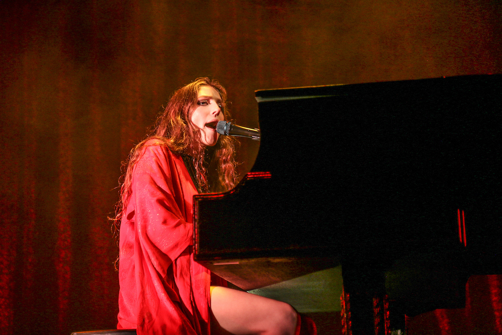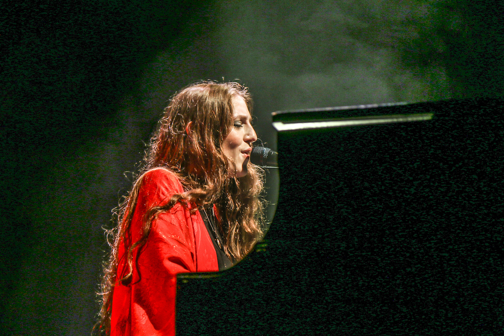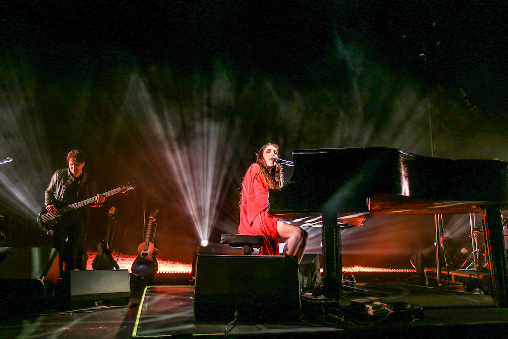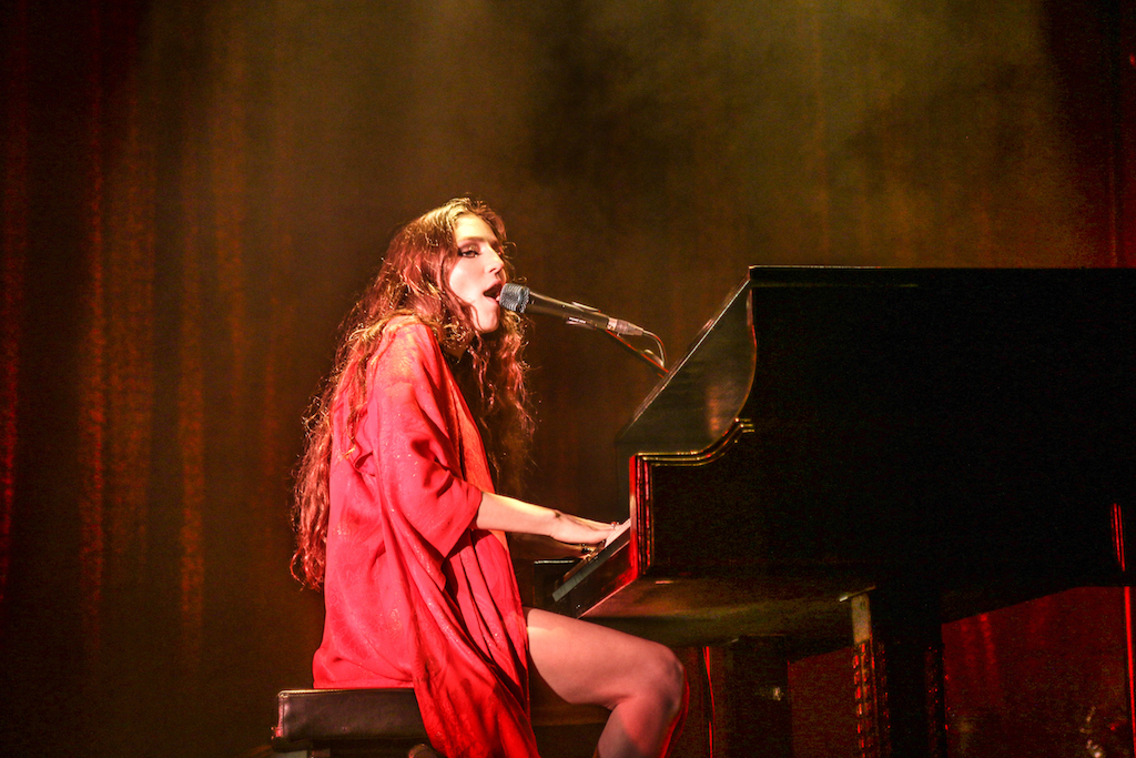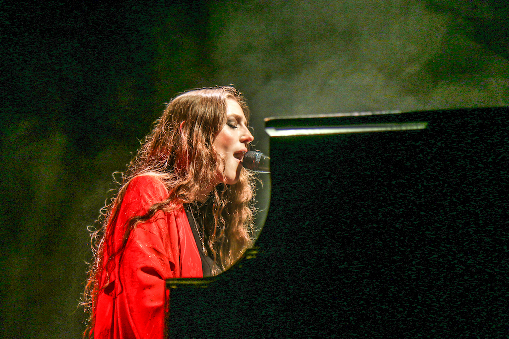 Jasmine van den Bogaerde – the singer’s real name – soulfully howled her way through the set, mostly from the comfort of the grand piano that sat centre stage. Witnessing this young woman stand up, for the occasional song, seemed to be enough to make the crowd go wild: there are not many artist who have this power. It was a smooth, delicate and heartfelt performance, a very quiet and sincere “thank you” followed every song. It was a rather special atmosphere as the audience stood and swayed mesmerised by the other-worldly, angelic sounds filling the space.