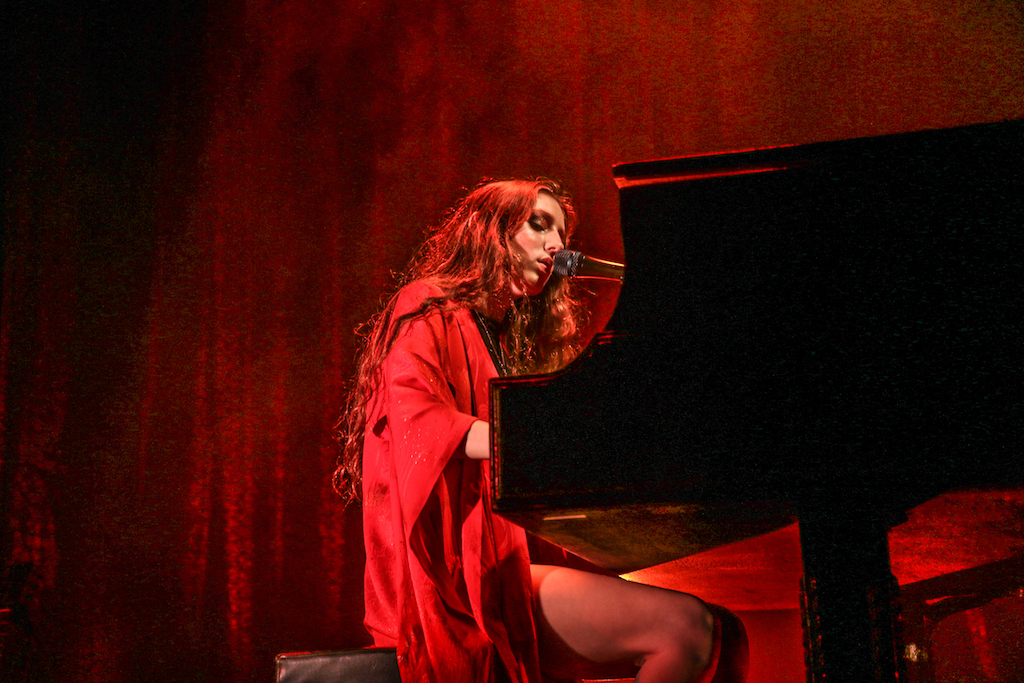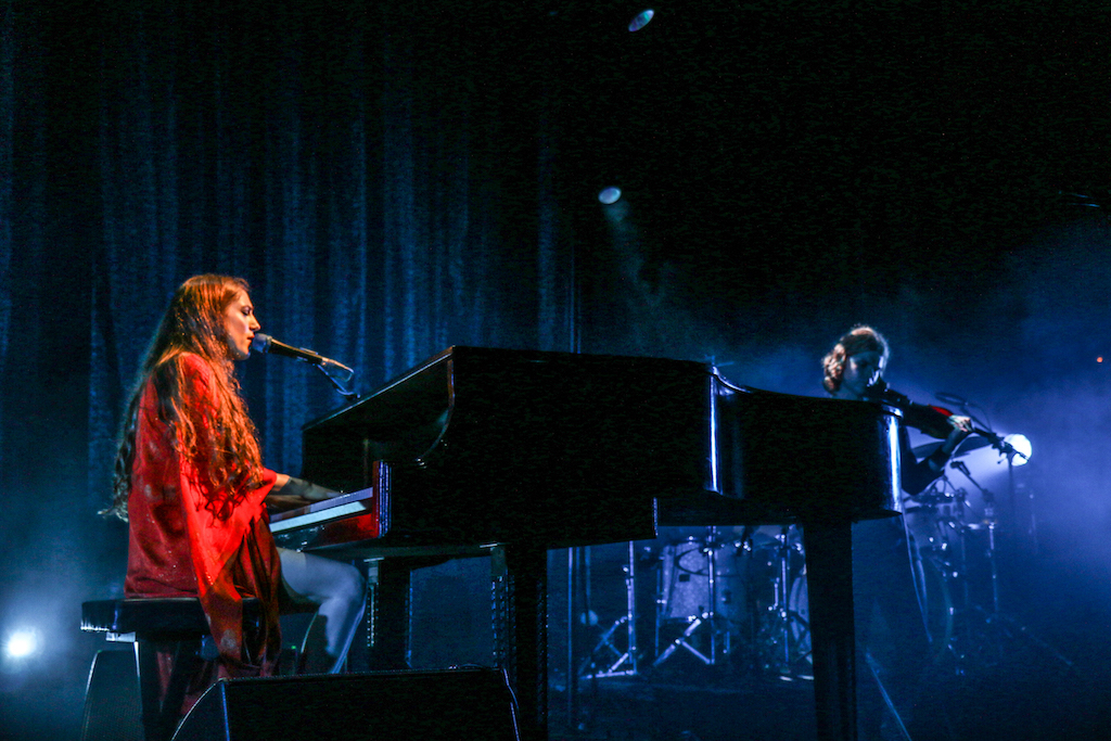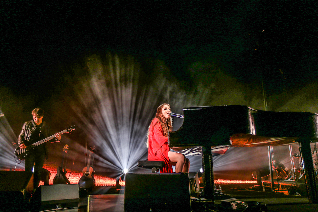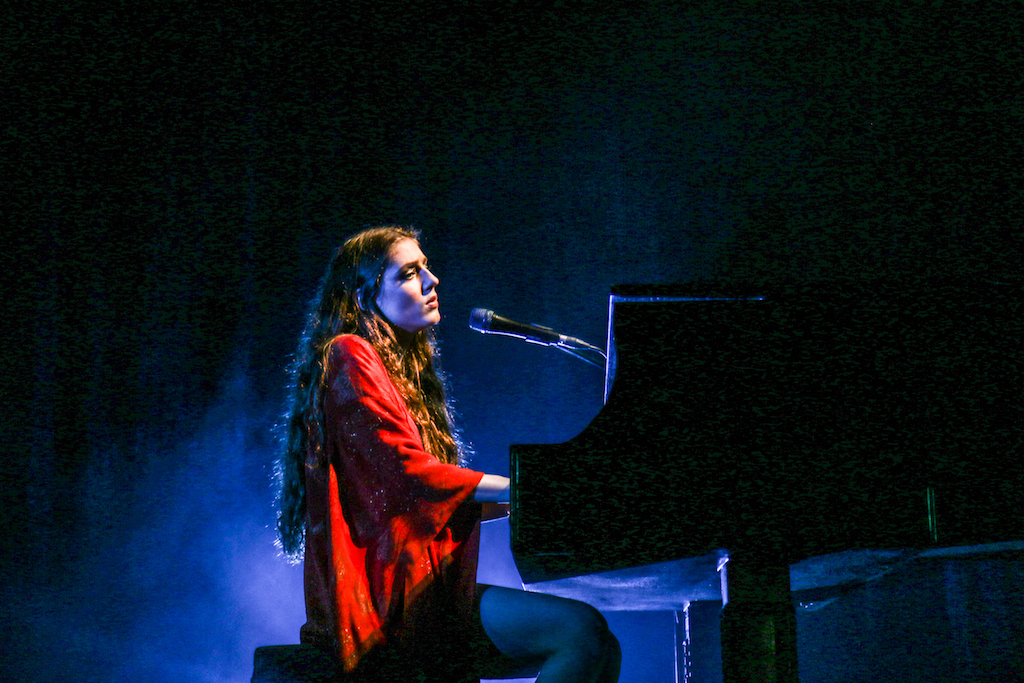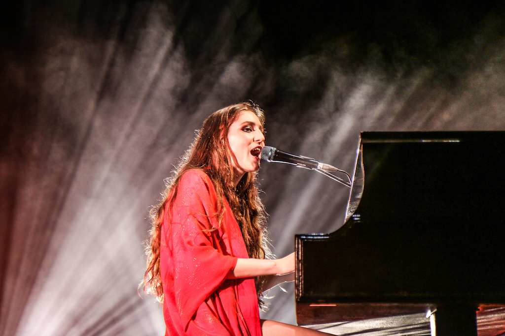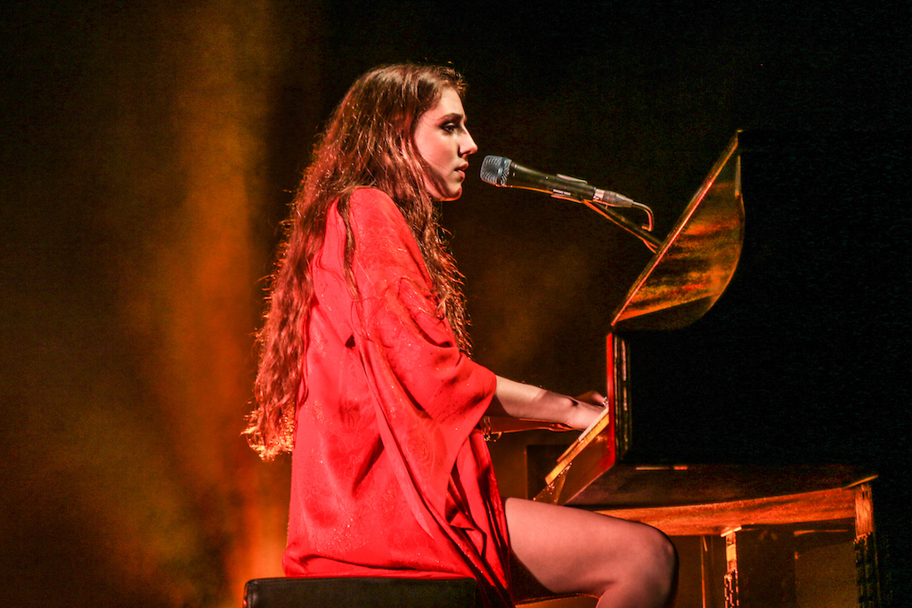 Jasmine van den Bogaerde – the singer’s real name – soulfully howled her way through the set, mostly from the comfort of the grand piano that sat centre stage. Witnessing this young woman stand up, for the occasional song, seemed to be enough to make the crowd go wild: there are not many artist who have this power. It was a smooth, delicate and heartfelt performance, a very quiet and sincere “thank you” followed every song. It was a rather special atmosphere as the audience stood and swayed mesmerised by the other-worldly, angelic sounds filling the space.