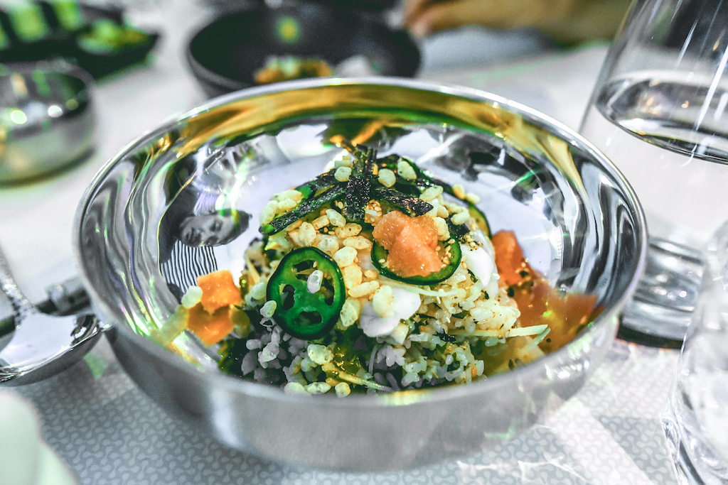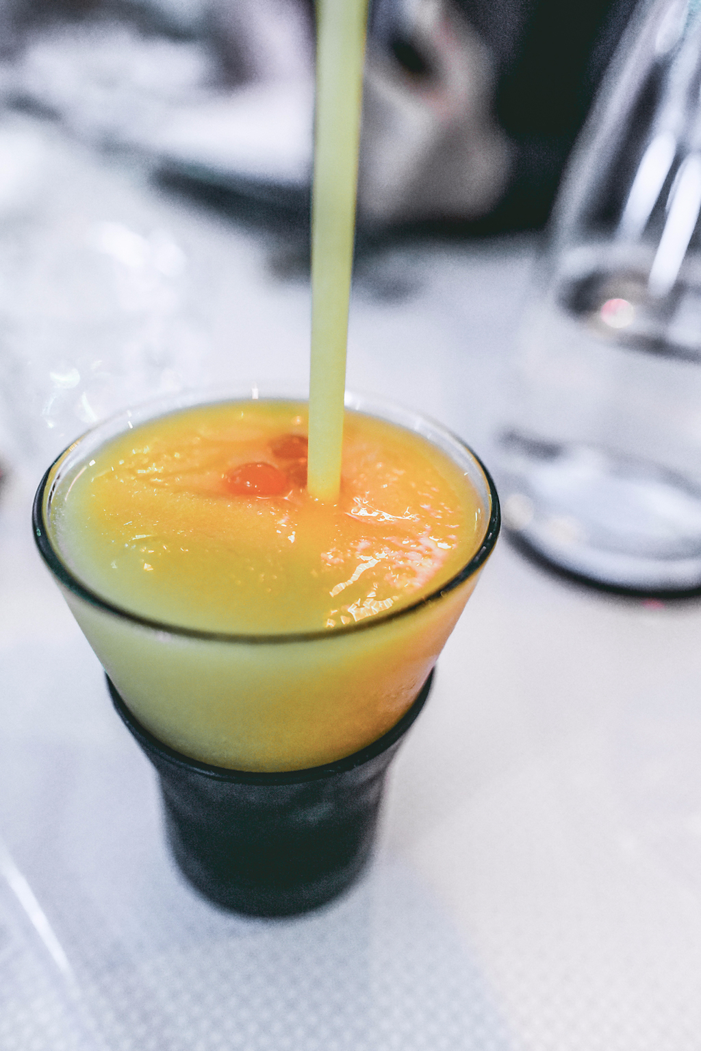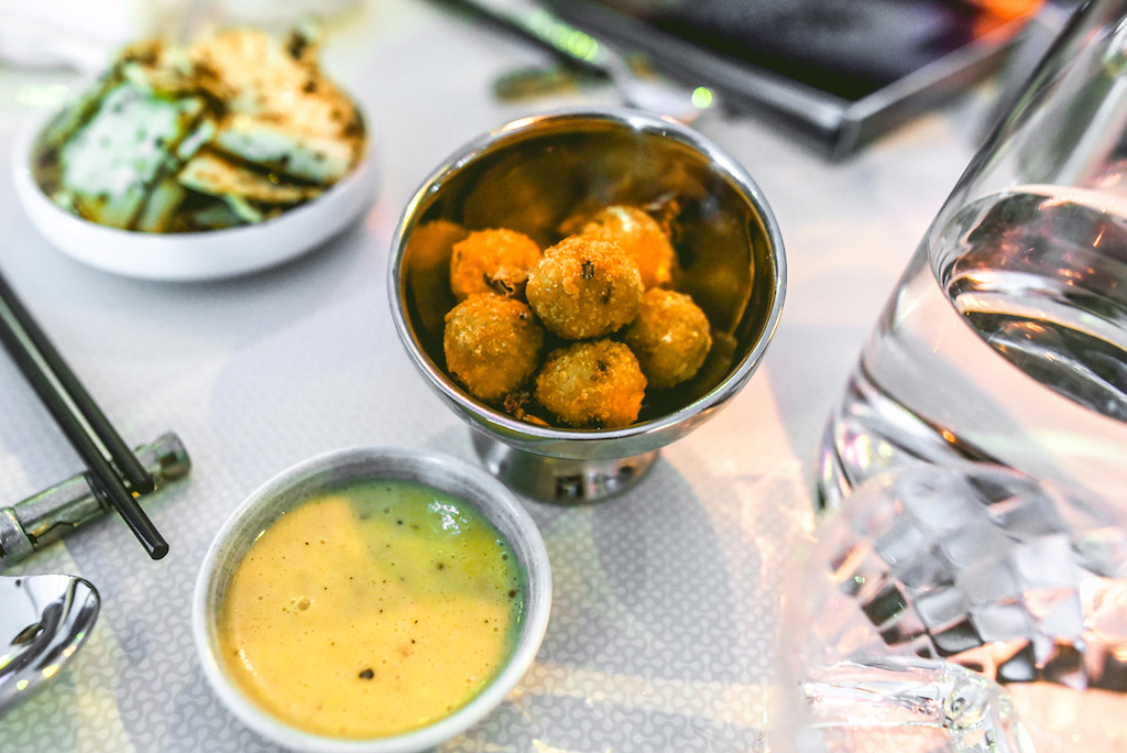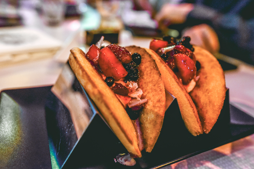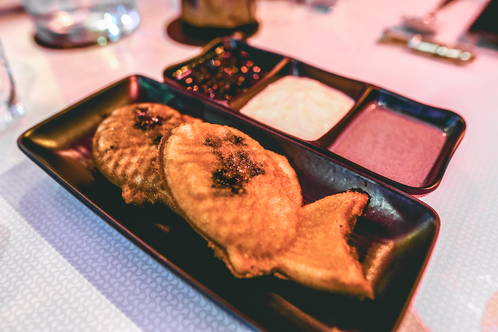 The pancakes that follow are more traditional, topped with fresh fruit and white chocolate. It’s a classic combination and it works just as well as expected, fluffy pancakes sandwiching a generous filling of berries. A Peanut Butter and Mocha Block is similarly Western in flavour, but given an Asian twist by the light rice sorbet that accompanies it. The stand-out dessert though, is the Fish Waffles: pillows of golden brown pastry served with a heavenly honey whisky cream. Much like the other great dishes of the night, it balances seriously rich flavours with just a hint of fruit to cut through all that indulgence, in this case coming in the form of a tart blueberry preserve.