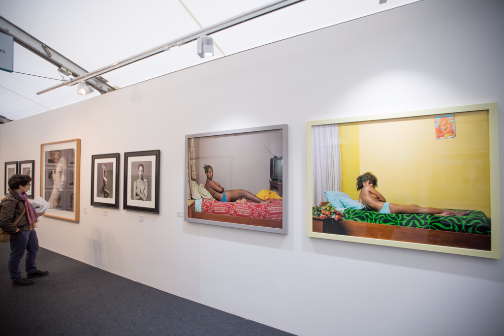 At the other end of the spectrum, the “discovery” section on the mezzanine floor includes fascinating work by contemporary photographers who are pushing the boundaries of the medium. Galerie DIX9 is showing three artists from different countries whose work questions the materiality of the photograph. Leyla Cardenas, for example, combines multiple versions of the same photo, each incised with different holes, to create a layered and three-dimensional image of an abandoned building, in an attempt to challenge the notion of photography as a static and atemporal medium.