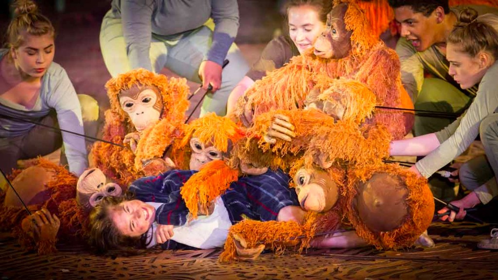 Regent’s Park Open Air Theatre is the perfect magical setting for this production with its atmospheric lighting and clouds of blossom floating in the air. Surrounded by trees, the stage becomes a rainforest and the actors transform into the sea and the trees, transporting the audience across the world to Indonesia, despite the chilly English breeze. The animals complete the striking visual spectacle in the form of stunningly crafted puppets, sliding and careering around the auditorium under the control of talented puppeteers.