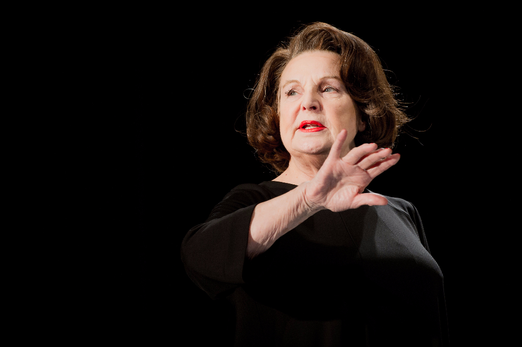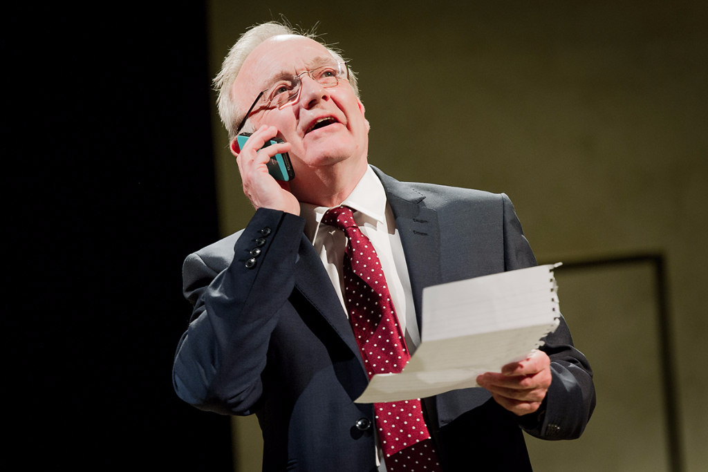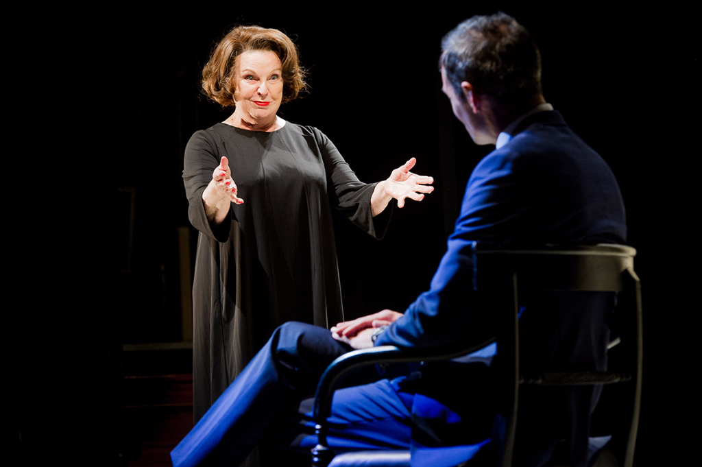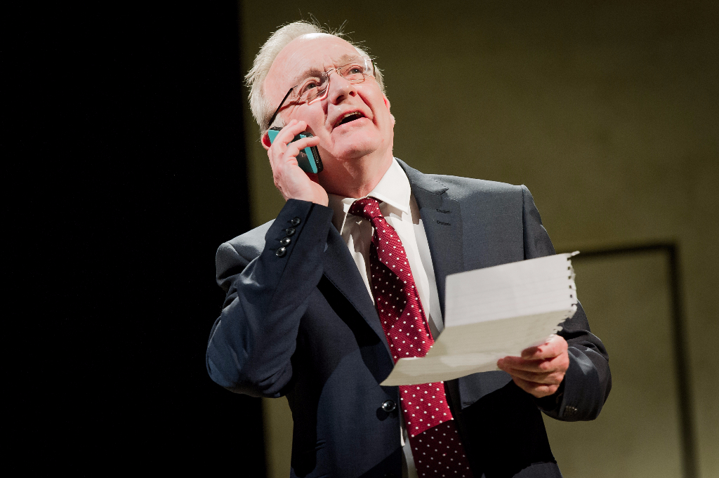 Hare’s contribution is even stranger: George Osborne (don’t call him Gideon) locks Theresa May in a room with Ayn Rand to hash out the particulars of the free market and free speech. The highlight is undoubtedly Ann Mitchell as the Russian-born author, keeping her accent just on the right side of caricature while tearing strips off the Home Secretary in a capitalist critique of May’s immigration policy.
