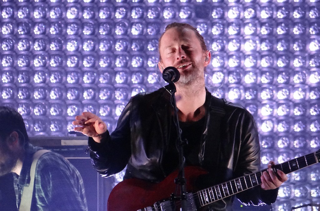 Fans couldn’t hope for a better venue to enjoy the intricate, mind-boggling melodies of the Oxford band. The show kicks off as a live performance of their latest record, A Moon Shaped Pool. They lead with album opener – and first single – Burn the Witch, a disturbing depiction of a witch hunt supported by obsessive and eerie col legno strings; the next four songs faithfully respect the tracklist, reaching a climax with Full Stop when Yorke dances as he plays a handheld controller.