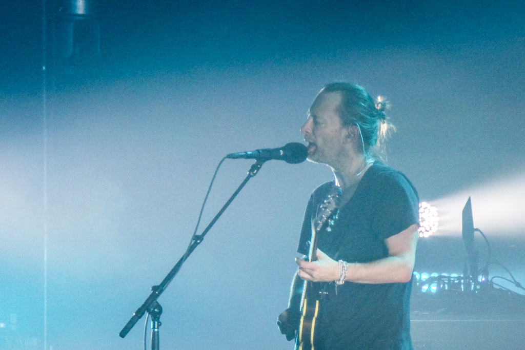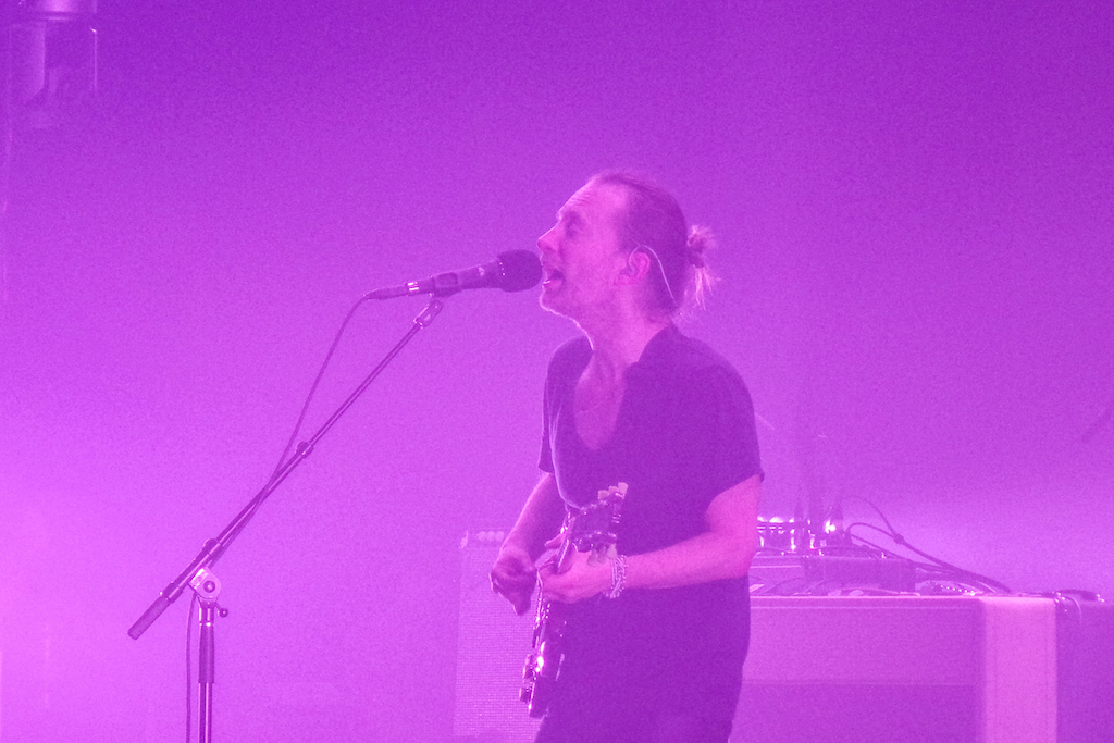 Fans couldn’t hope for a better venue to enjoy the intricate, mind-boggling melodies of the Oxford band. The show kicks off as a live performance of their latest record, A Moon Shaped Pool. They lead with album opener – and first single – Burn the Witch, a disturbing depiction of a witch hunt supported by obsessive and eerie col legno strings; the next four songs faithfully respect the tracklist, reaching a climax with Full Stop when Yorke dances as he plays a handheld controller.