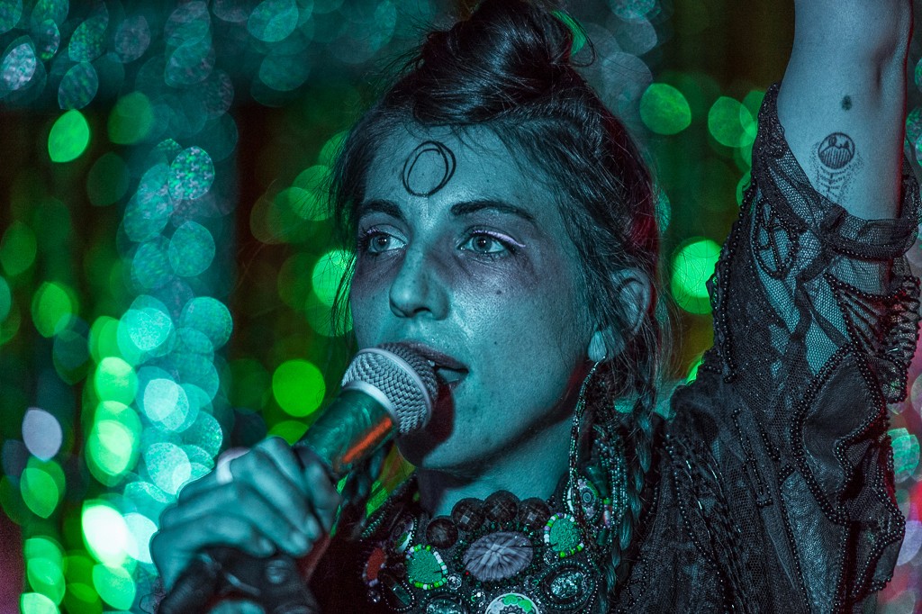 45 minutes late for their half-hour set, Doomsquad’s exploratory music is rendered all the more dissonant when paired with the poor quality of sound and acoustics at the stifling Moth Club. Given the Toronto-based sibling group’s proclivity for oddity and the avant-garde, perhaps all of these encumbering effects are intentional.
