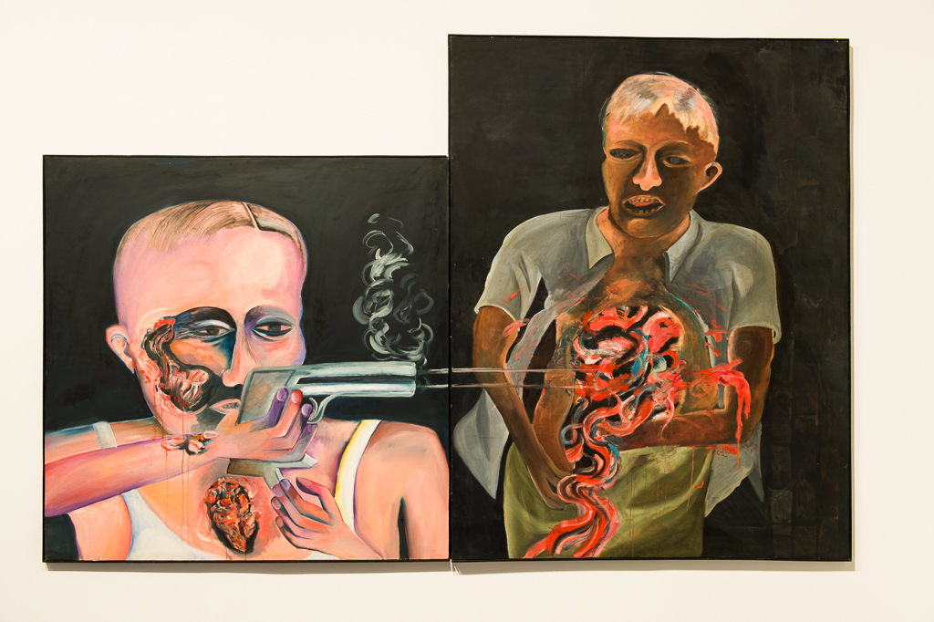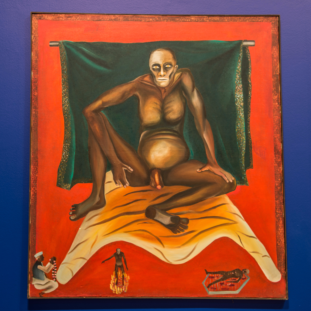 There are some good works on display, but they could be afforded some more curatorial context in order to help the Tate’s predominantly western audience grasp their full meaning. The scenes presented in the first room of the exhibition are particularly enigmatic, but they are also some of Khakhar’s most powerful works on show. The flattened pictorial plane makes the action appear as if it is taking place at a slight remove from the viewer. The bright jewel tones of paint are reminiscent of traditional Indian miniaturist paintings, but the subject matter is taken from Khakhar’s own life or borrowed from everyday imagery, such as a firecracker wrapper.