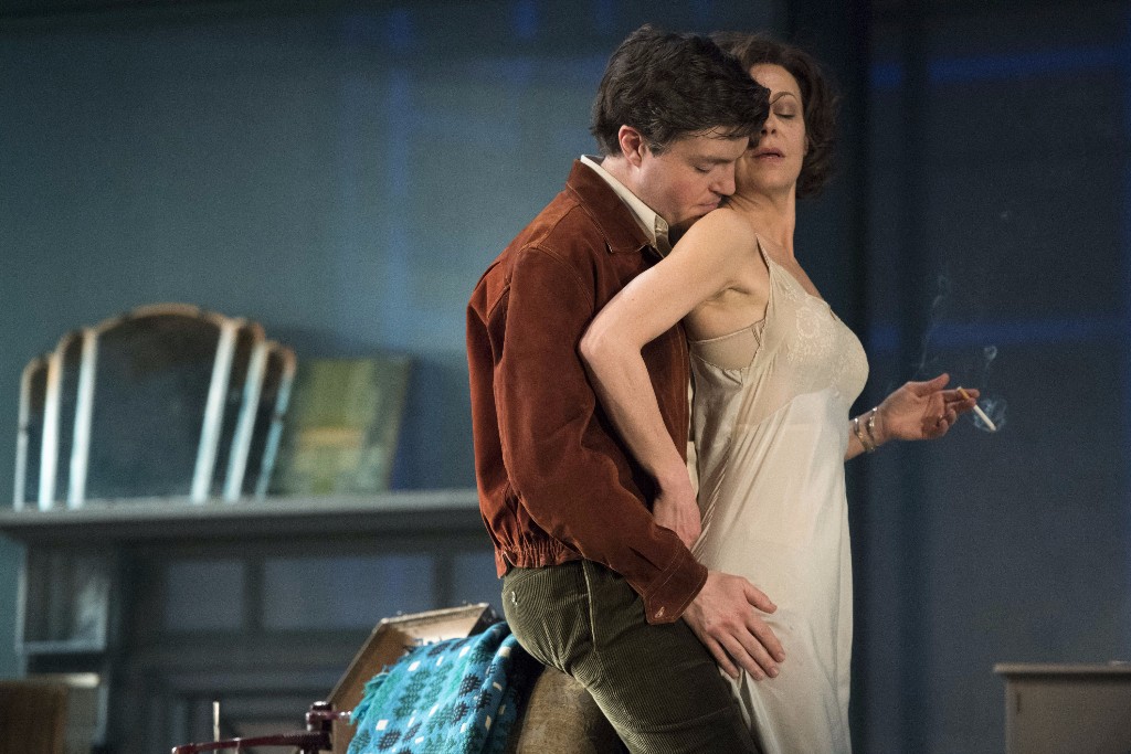 From the robotic haze of the aftermath of her suicide attempt to the easy, if inert, relationship with her husband, to a series of frantic pleas down the phone, McCrory brings a delicacy to the role of Hester where a lesser actress would opt for melodrama. This subtlety makes it all the more alarming when the character’s thoroughly British mask slips to reveal the torrent of distress that ripples under the surface. McCrory is ably served by the pair that complete the play’s central love triangle. As Bill, Peter Sullivan exudes the patronising, if sincere, aura of the 1950s man-in-charge, for whom emotions are more said than felt. Tom Burke’s Freddie, meanwhile, combines brutish naivety and fragile narcissism, his implicit form of post-WW2 PTSD complicating his callousness.