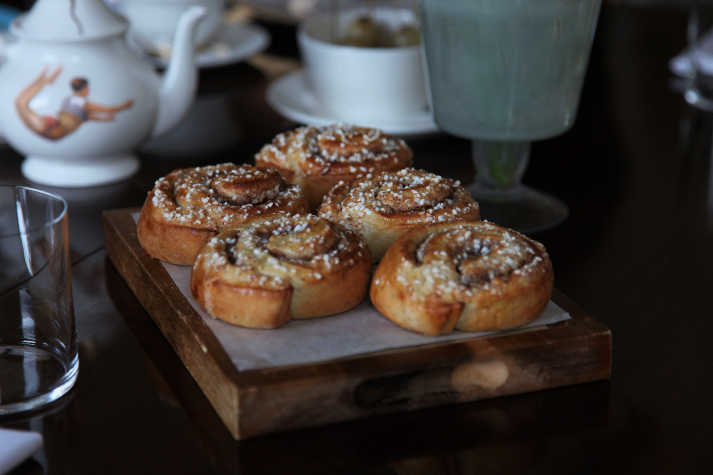 Any good afternoon tea wouldn’t be complete without pastries of course. Boards piled with danishes litter the table, their rich golden pastry contrasting beautifully with the tang of the fruit at their centre. The stars of the show, though, are the traditional cinnamon buns. A Swedish classic, their crisp outer shells give way to pillowy rings of pastry lined with a sweet cinnamon paste. They make the humble Chelsea bun look like a mere pretender by comparison.