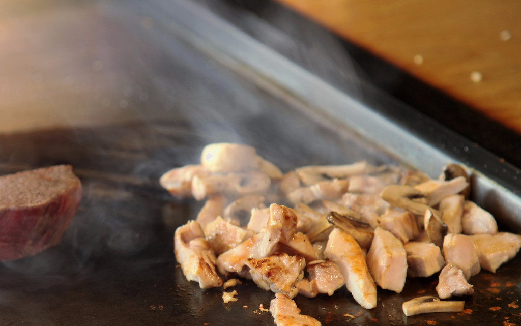 As for making things memorable, the use of a teppan is certainly a novelty for most. These huge open griddles form the centrepiece of every dining area, with individual parties grouped around, watching the chefs at work. The sizzle and steam of frying meat is strangely mesmerising, and short preparation times ensure that customers don’t spend too long staring longingly at their dinner.