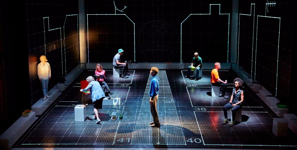 One of the highlights of the show is perhaps the multimedia, larger-than-life set, which in some way replaces the untransferable quirky features of the book and provides the element of originality. It also serves as a tool to better convey the protagonist’s obsessive interest in maths. The entire performing space is covered in a monochrome mathematical grid that doubles up as a blackboard, as a screen, and sometimes lights up to form different coloured patterns. The hi-tech set is spacious enough to allow a great range of movement and the actors leave no corner unused as they lift one another up in the air, and support each other in acrobatic moves and even through a horizontal walk against the walls.
