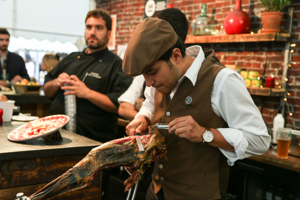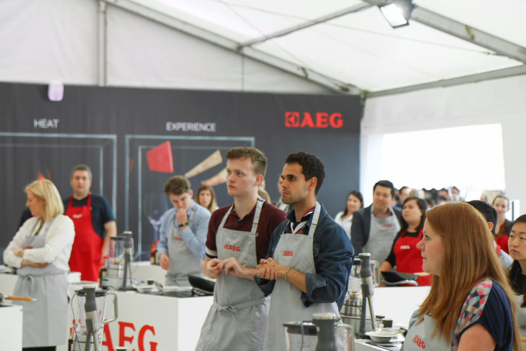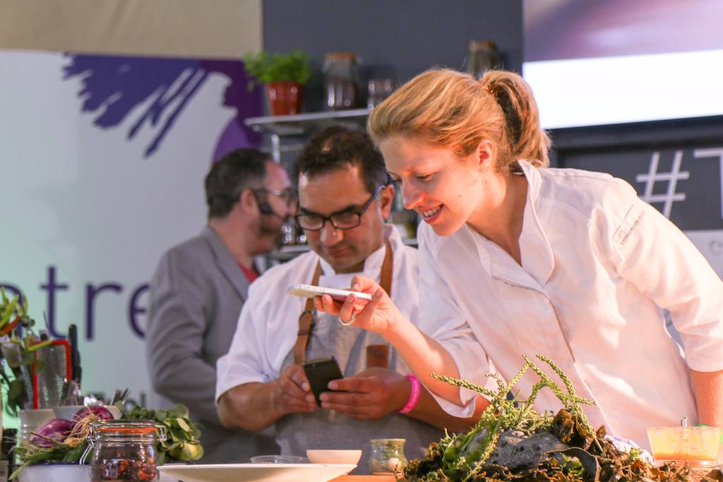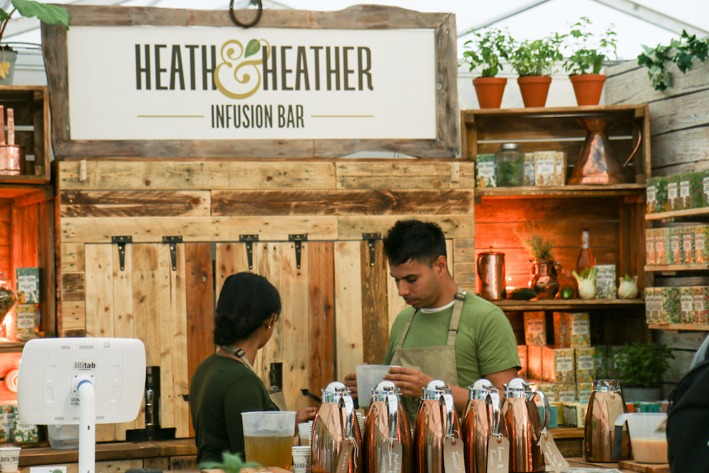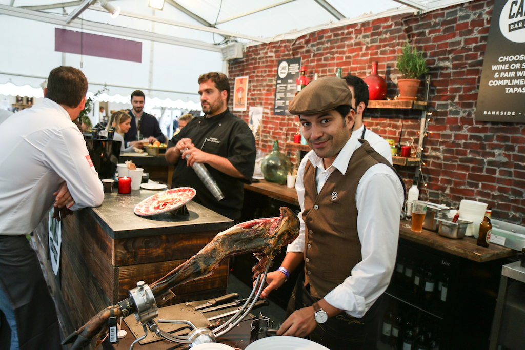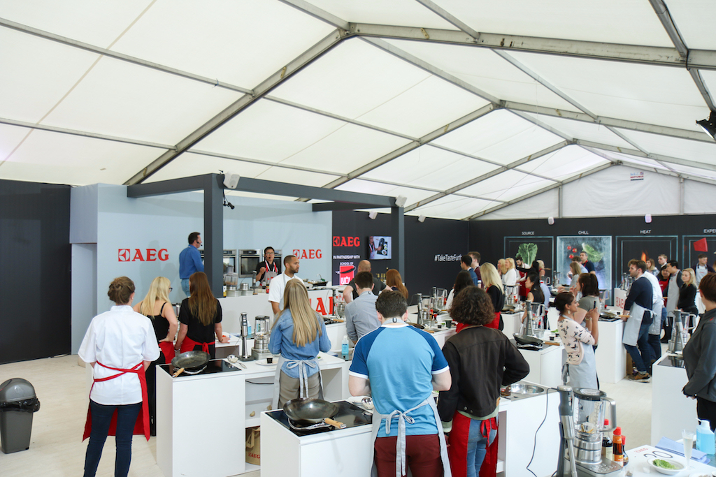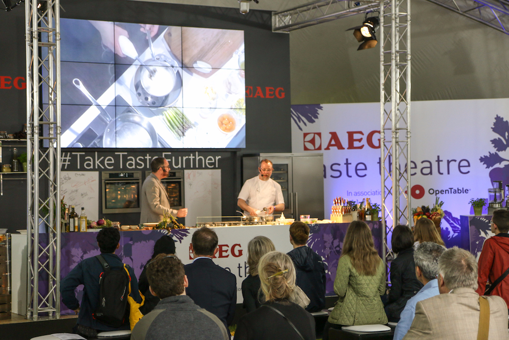 Beyond the range of outstanding restaurants on offer, there’s a fine selection of stalls selling everything from artisanal popcorn to handcrafted chocolates. The first thing that catches our eye is the gleam of copperware at Chaleureuse, whose tables groan under a stunning selection of timeless pans. Next up, the wax-sealed wheels of Black Bomber from the Snowdonia Cheese company are well worth a try for any fans of seriously mature cheddar; wash it down with raspberry-infused Pinkster gin, which will no doubt enjoy another summer as a key ingredient in many a lazy cocktail.