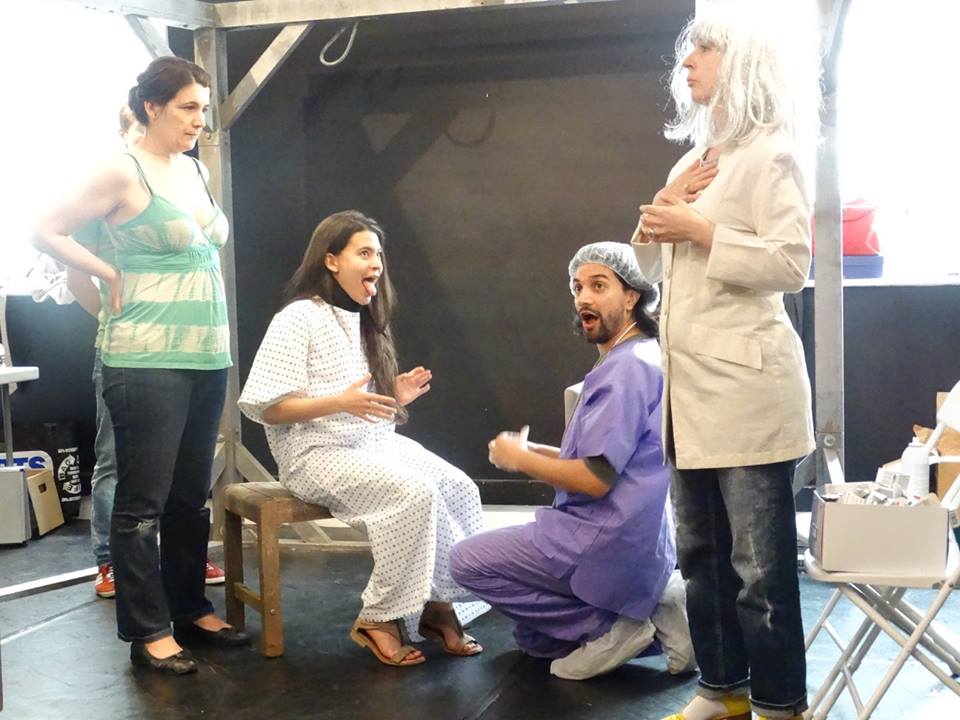 Opening with vibrant music and a scene right out of a rock musical, The Doctor in Spite of Himself is the story of Sganarelle (Furlong), a gambler and a drunk who violently fights with and beats his wife, subsequently suffering consequences. His wife concocts a plan, spreading the word that her husband is actually a brilliant physician – “You are the greatest doctor in the world.” – who will not admit he is such unless he is physically beaten. He does not want to be a doctor, but is thrashed and bullied until he agrees. Sought after to cure a young woman who is mute, Sganarelle hilariously charms and flirts with her mother (Yanouchka Wenger Sabbatini) and the nurse (Fanny Dulin), spouting gibberish, yet ultimately curing the subject using common sense: for Lucinde (Anita Adam Gabay) is mute because her mother insists she marry a man she does not love instead of her beloved.