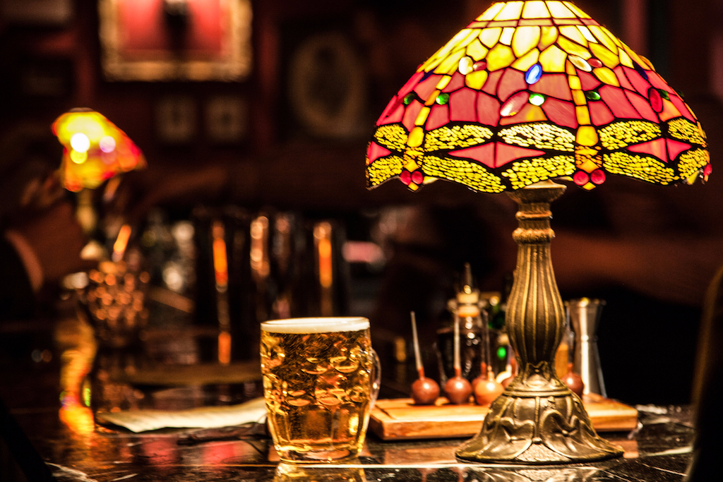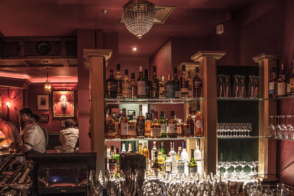 Normally, it would be cause for criticism but, as odd as it sounds, the relative obscurity is part of the charm here. The Four Sisters Townhouse clearly aims to be a refuge from the churn and chaos of the City outside, without losing the liveliness of a bar; clever design ensures that it accomplishes just that. There’s something of the members’ club about the place, all wood panelling and gaudily upholstered furniture. Towering bookcases and Tiffany-style lamps give it an intimate feel. The usual issue with that is that clubs are designed for the elite: once you start packing them full of post-work revellers the result can feel cramped and claustrophobic. Here, though, split level flooring, a wide bar and high ceilings are all used to keep the room feeling relatively open and airy, even when full to capacity.