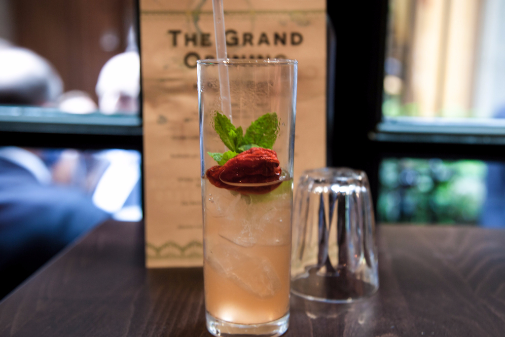 Of course, a bar is only as good as its drinks. We kick things off with a Kentucky Rhapsody: Jim Beam bourbon, lemon, pineapple, pepper and scotch bonnet soda. Lemon and pepper combine as beautifully in a glass as they do on a plate, the initial citrus zing giving way to a fiery heat. The pineapple is somewhat muted in the face of two such bold flavours, its main purpose to take the edge off of other ingredients. It’s a pretty thing too, topped with a little sugar-dusted scotch bonnet that looks for all the world like some exotic fruit.