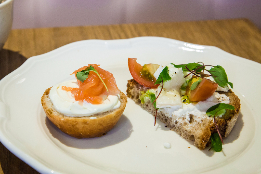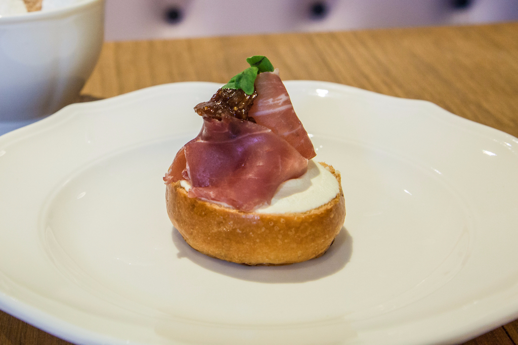 Avocado with spiced yoghurt canapé is pleasant enough, although it would be more accurate to call it “paprika yoghurt”, as it is impossible to detect any other spice in the mixture. Nevertheless, the smokiness works well with the creamy avocado, lending it an almost meaty quality. Their salmon with cream cheese is fine, whilst the parma ham with a sticky relish offers a good contrast of textures and flavours.