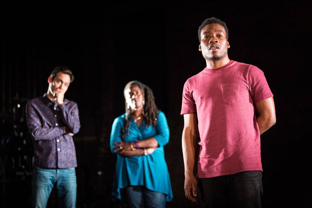 Constructed from a series of quotes, be they from politicians, anthropologists or a selection of personal testimonies (many taken from Boy-Wives and Female-Husbands: Studies in African homosexualties, the book that provides the spine of the play) the rhythm of Pigs and Dogs is complemented by Dominic Cooke’s kinetic direction. The former artistic director of the Royal Court has the three actors almost tag-teaming each other into scenes and characters in a way that resembles slam poetry or longform improv more than it does traditional drama.