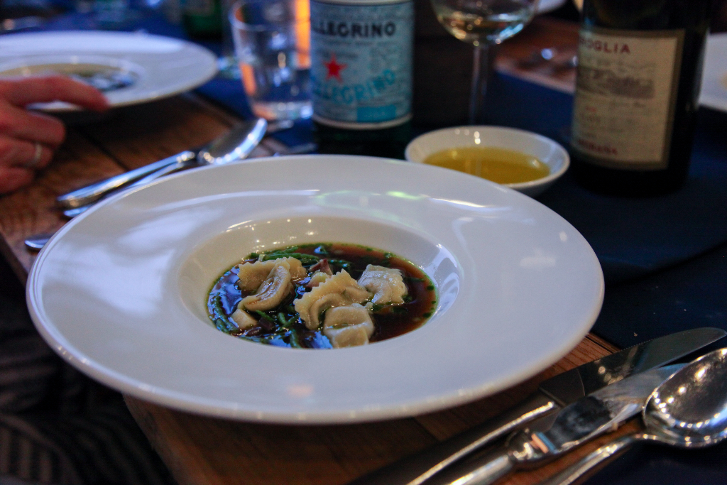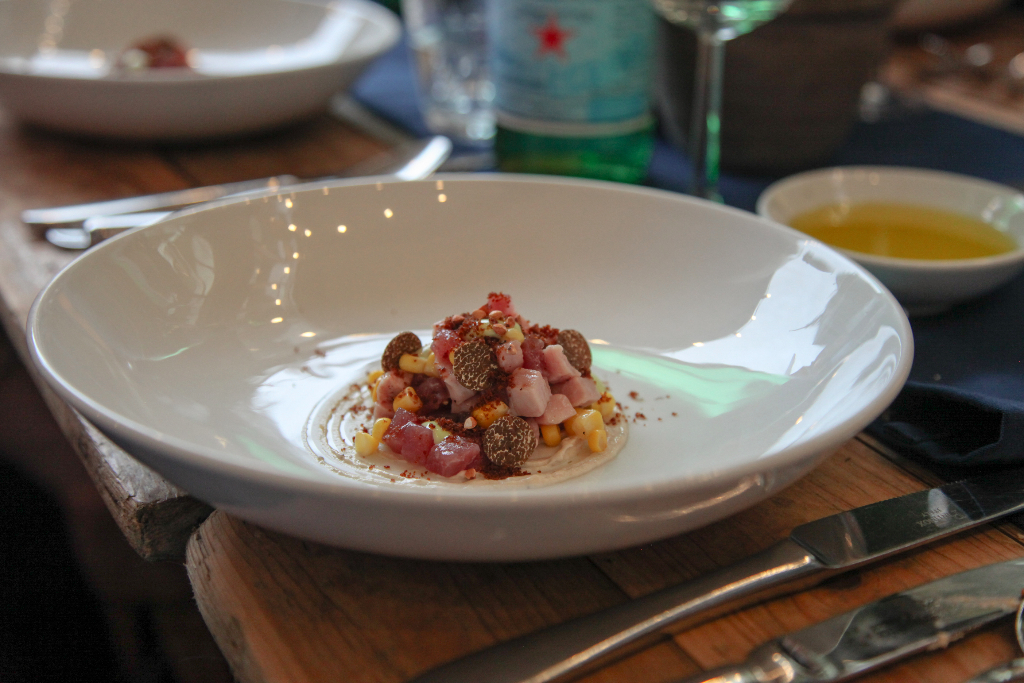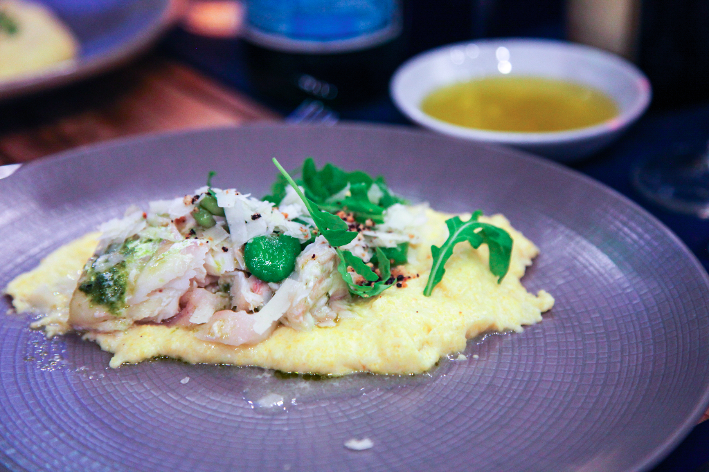 Honey Foccacia, Coppa and San Marzano Tomatoes provides a summery start to the meal, the sweet bread a great base for the tang of tomato and the saltiness of the coppa. It’s a stunning beurre noisette that has everyone talking, though: whipped until feather light, it brings a touch of elegance that lifts the foccacia into something far greater than a simple appetiser. Ripples of excitement pass through the tables – if the bread is this good, how amazing is the rest going to be?