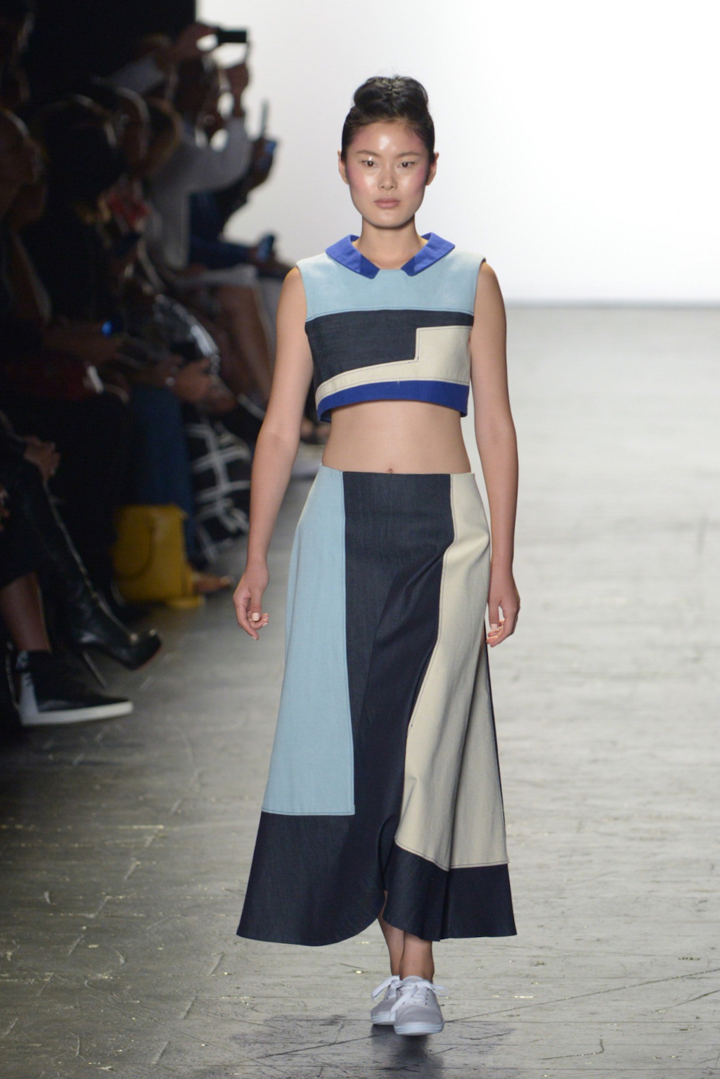 Adrian Escoto started off the show with a sporty collection comprised entirely of denim in a patchworked palette of blues and whites. The youthful line was well edited and easy to wear.