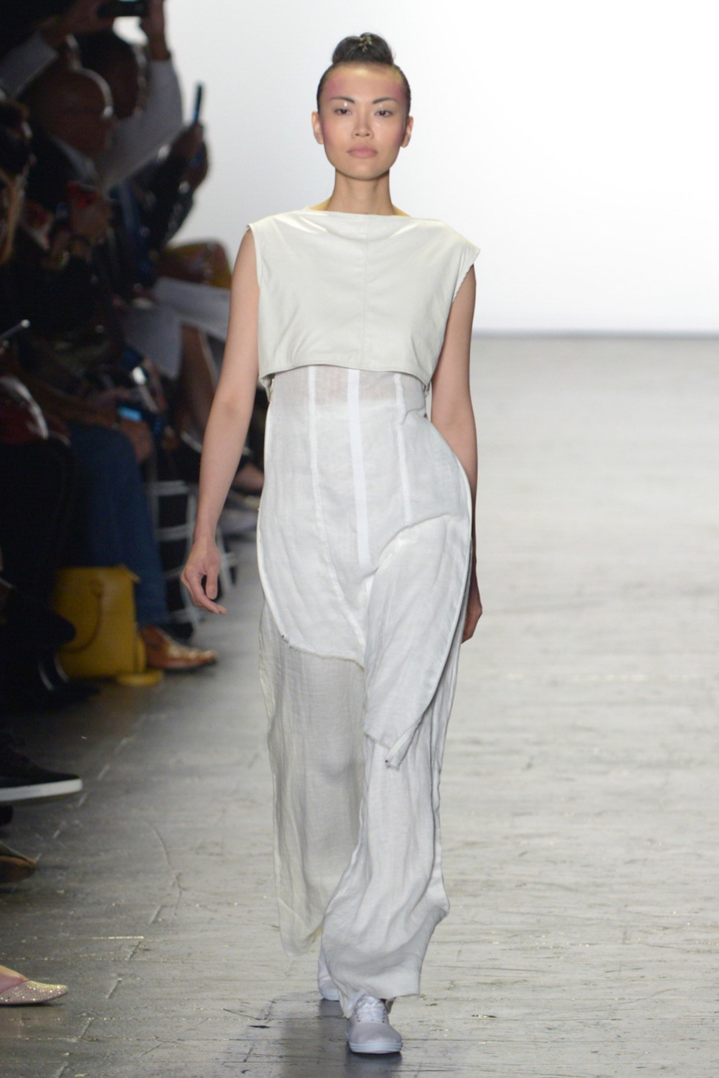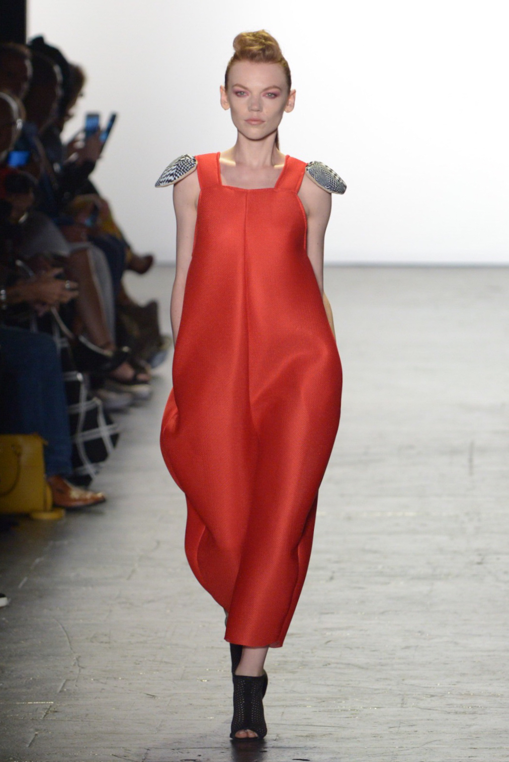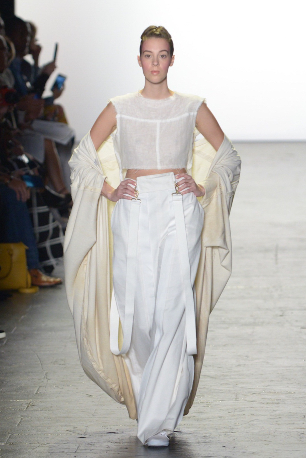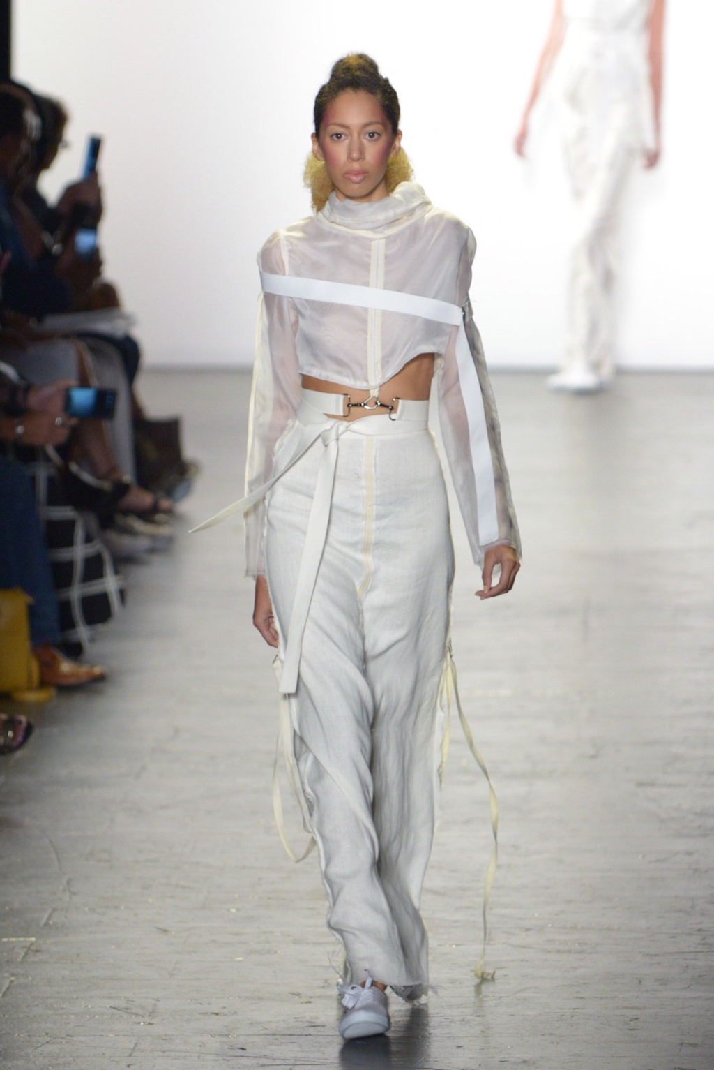 Julissa Arrington chose to let the shapes of her collection speak for themselves by choosing an ethereal all-white colour palette. The collection played with textures and proportions to great effect and her use of lacing details worked well in her monochromatic looks.