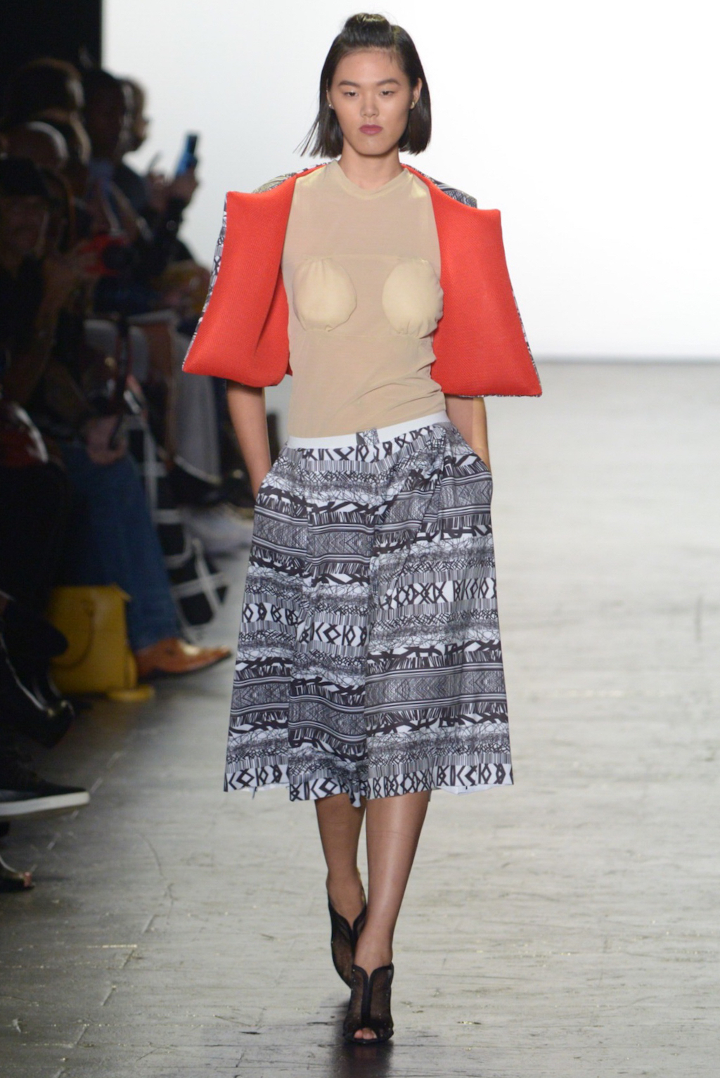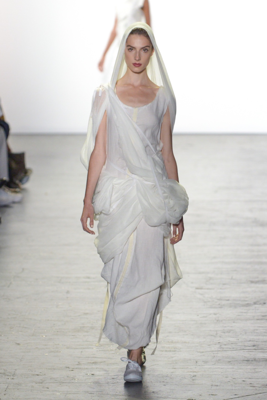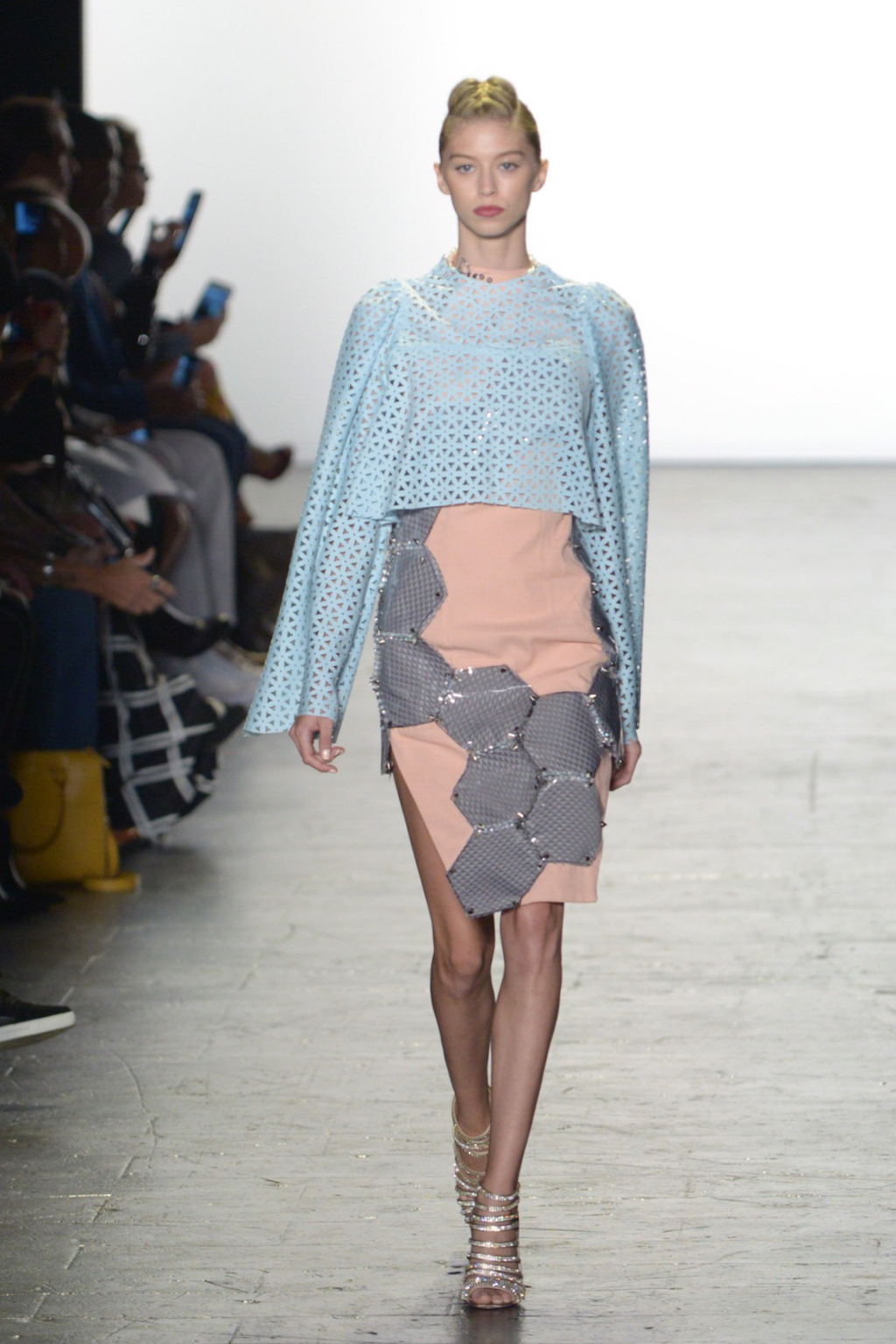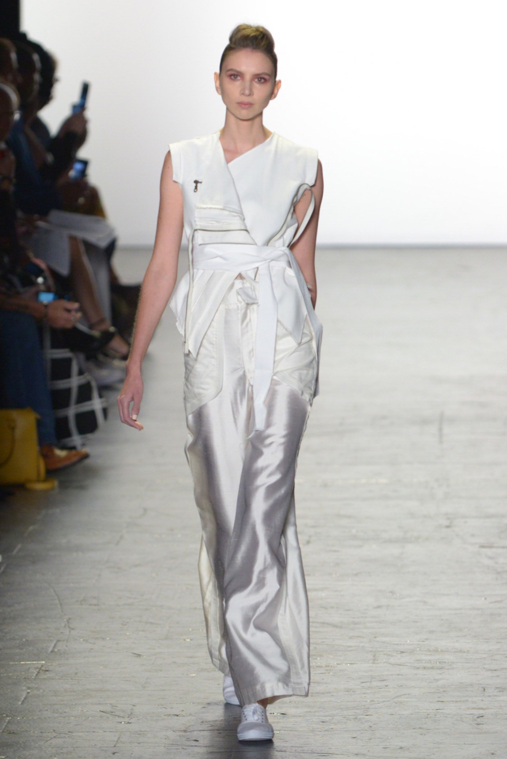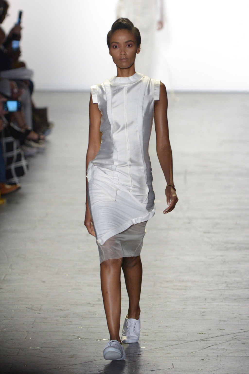 Julissa Arrington chose to let the shapes of her collection speak for themselves by choosing an ethereal all-white colour palette. The collection played with textures and proportions to great effect and her use of lacing details worked well in her monochromatic looks.