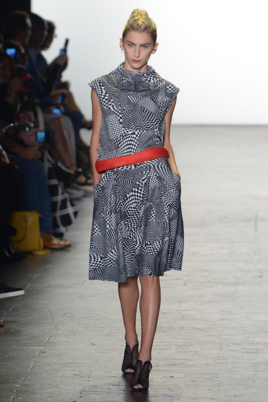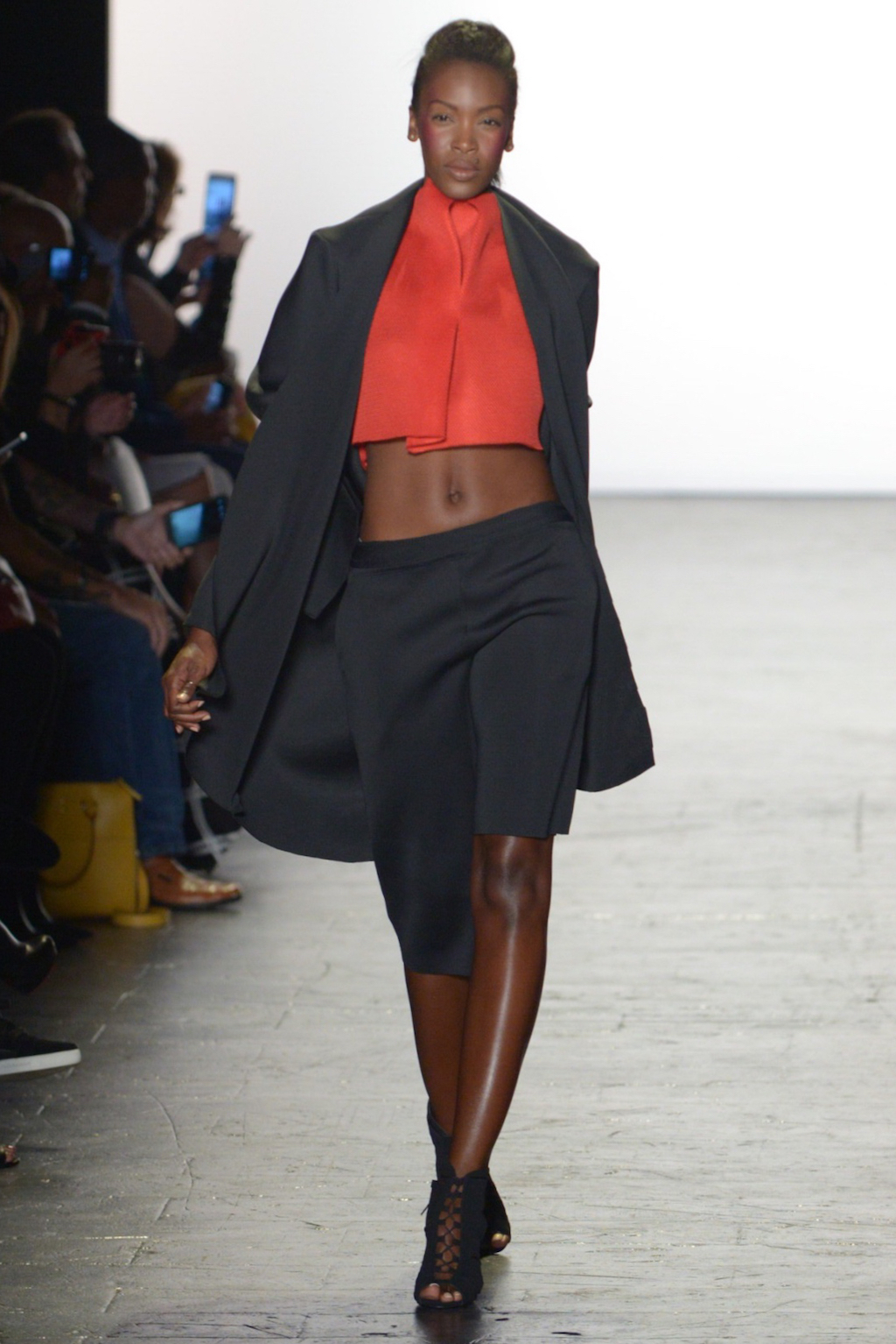 Devon Pezzano’s pieces were strong yet restrained. The use of draping with stiff fabrics such as neoprene created bold clean shapes that would attract a lot of modern women. The look of the garments was enhanced by the choice to use only black, white and red.
