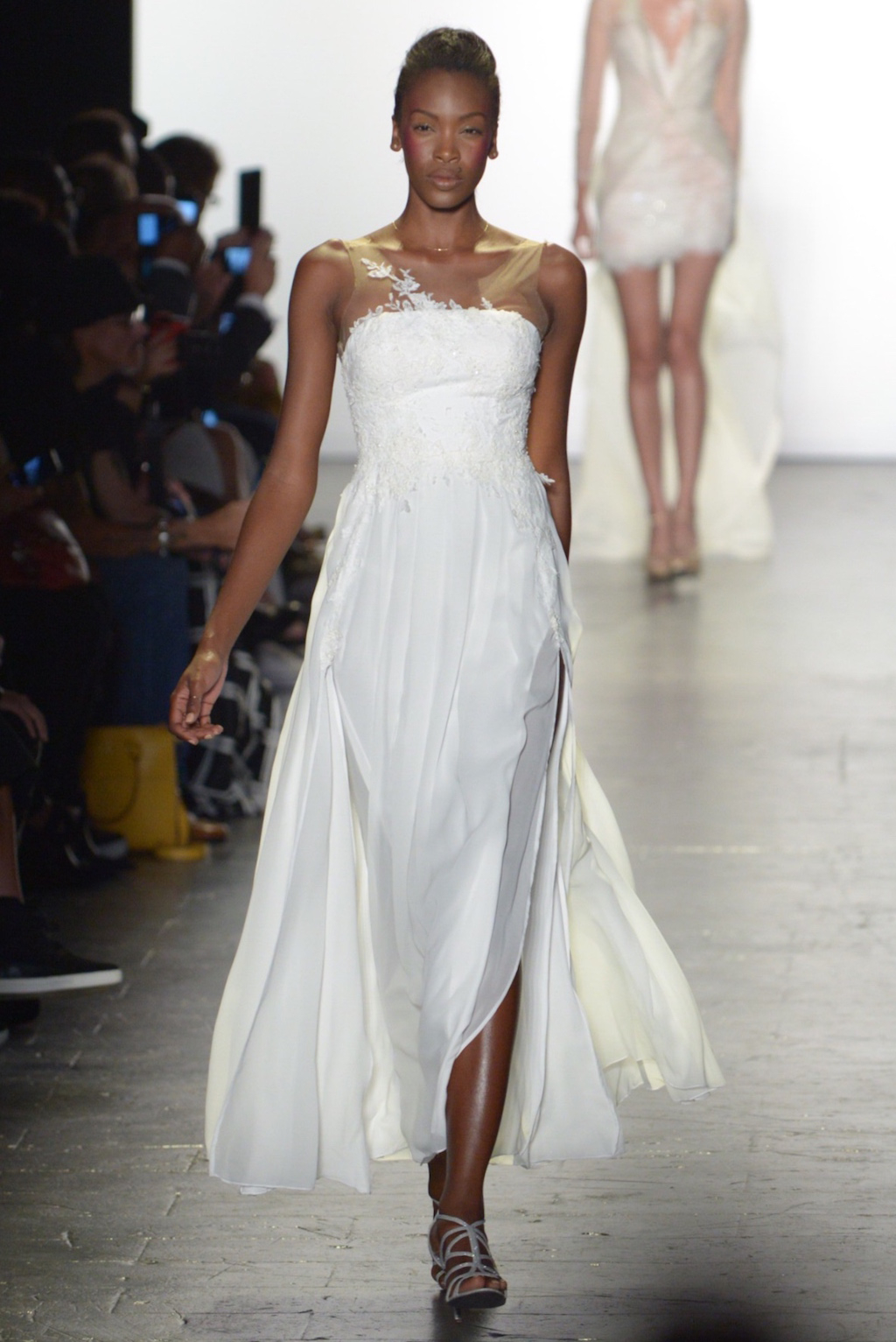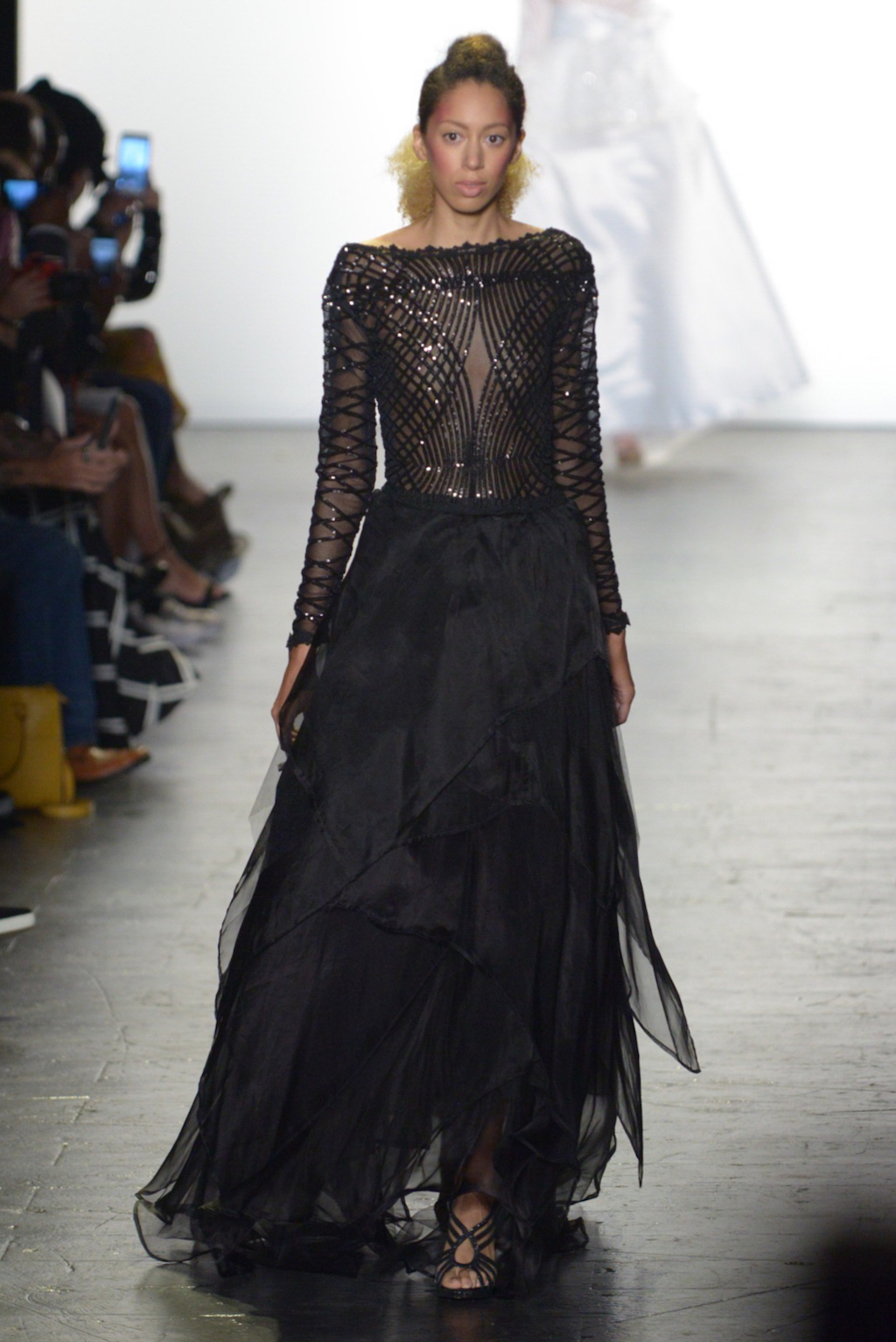 Eveningwear was the theme for Ashiru’s collection. The designer pulled out all the stops starting the show with a nude illusion gown to catch the audience’s eye and continuing with dramatic looks in satin and lace.