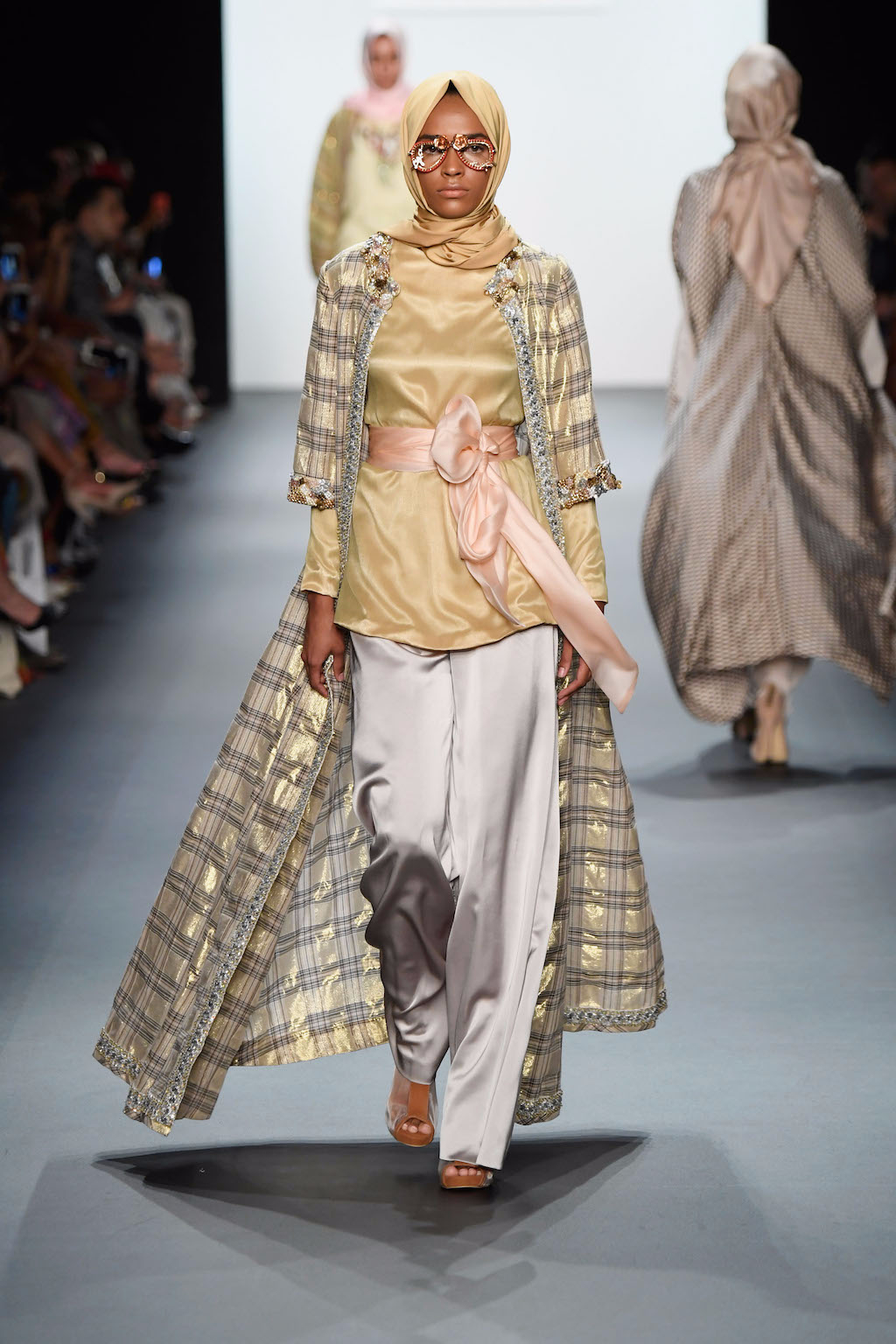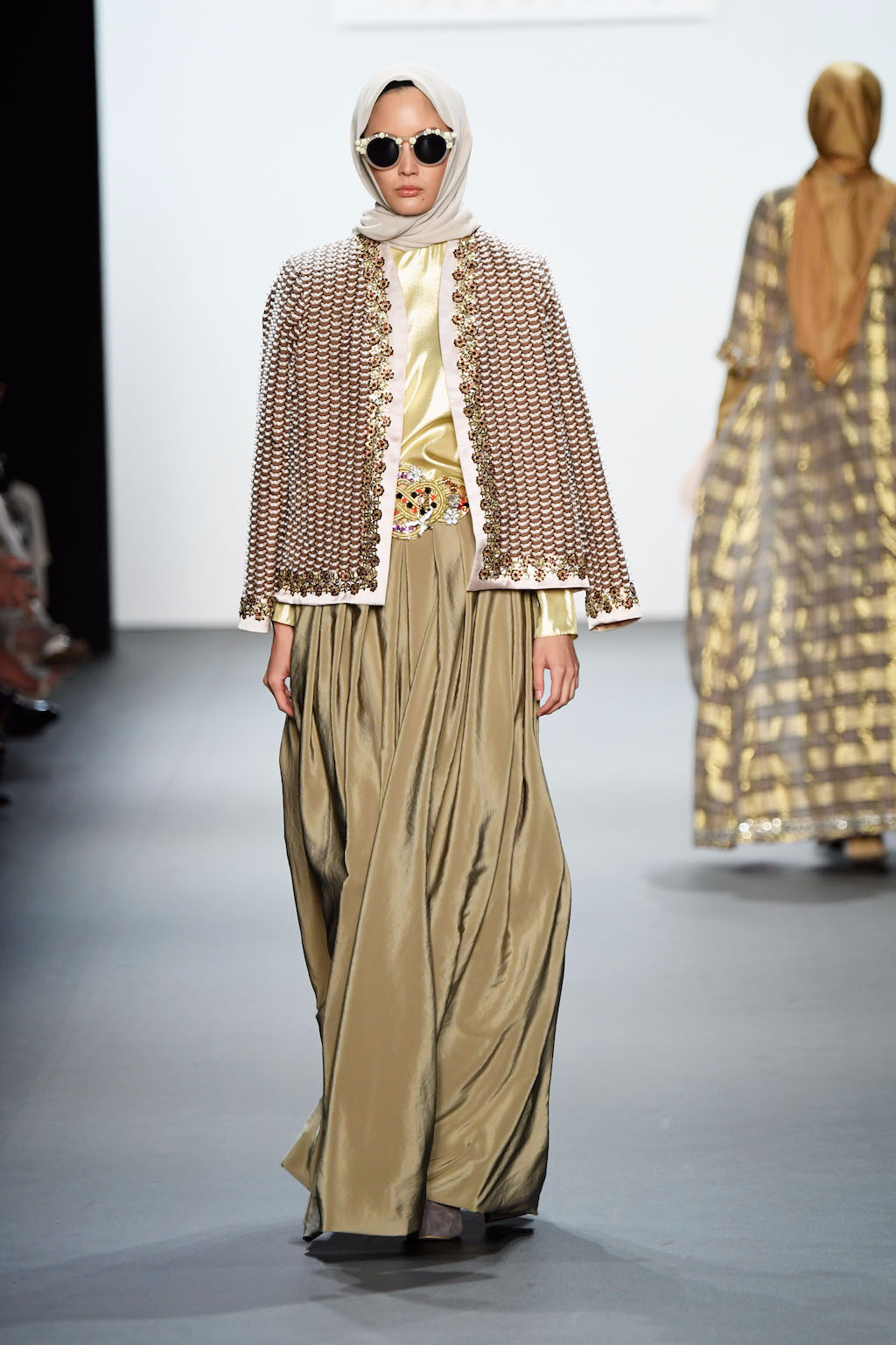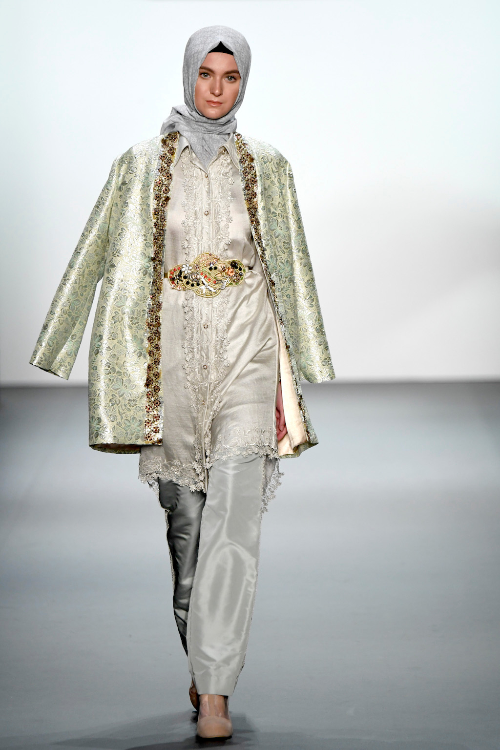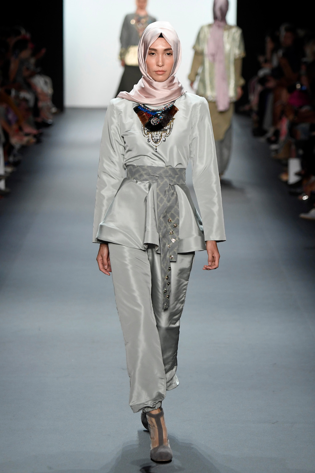 Crowds gathered in excess outside the Skylight at Moynihan Station in New York City on a balmy Monday night to see the return of Anniesa Hasibuan to New York Fashion Week. The Jakarta-based designer is known for her unique women’s evening wear, which combines classic techniques, Indonesian inspiration, with a distinct Muslim tradition. Updating the Hijab with crystal-crusted eyewear, pajama pants and chic layering, Anniesa took the headscarf and made it a high-fashion runway mainstay.