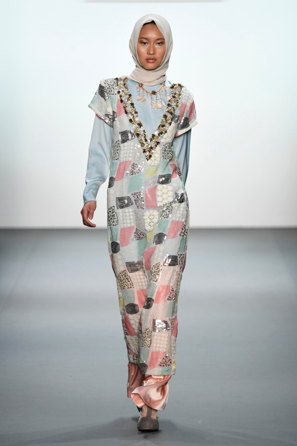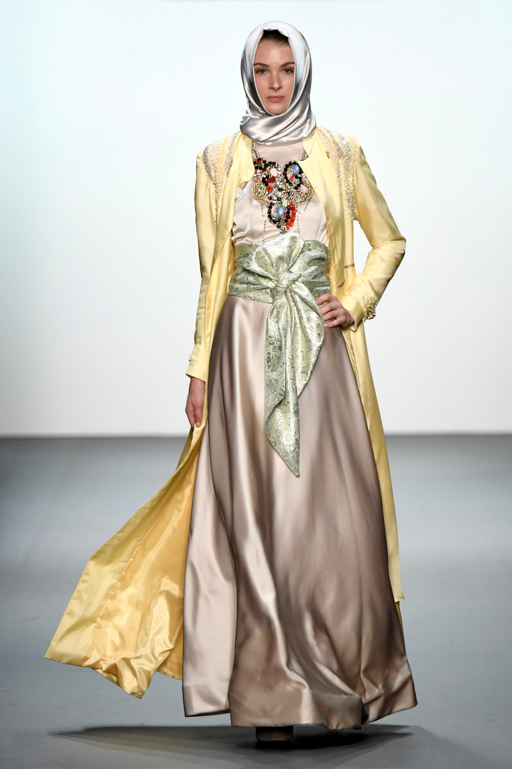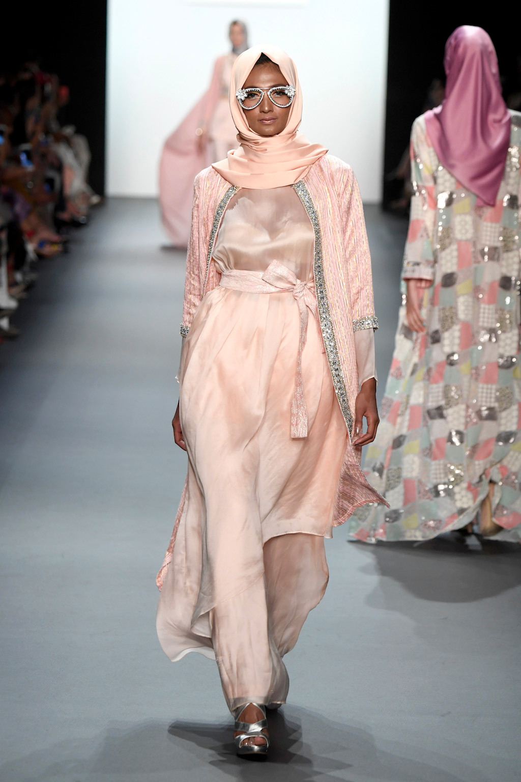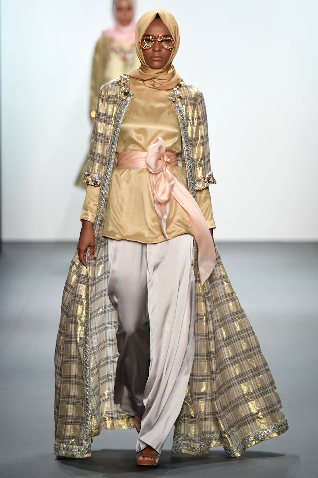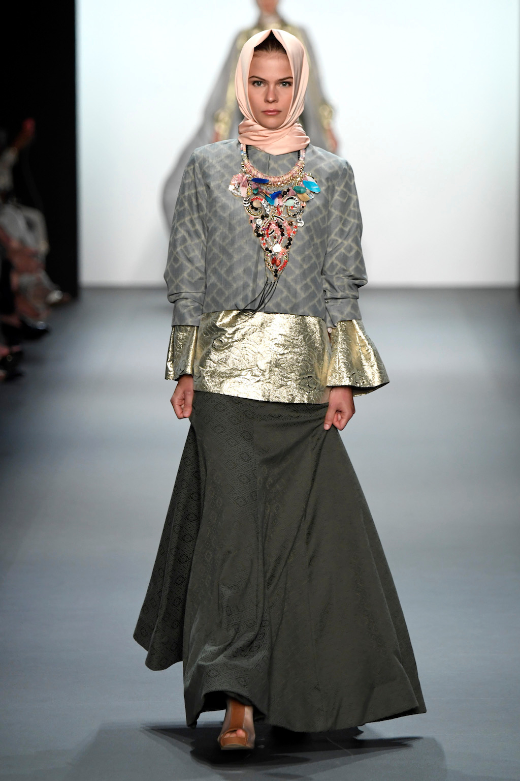 Crowds gathered in excess outside the Skylight at Moynihan Station in New York City on a balmy Monday night to see the return of Anniesa Hasibuan to New York Fashion Week. The Jakarta-based designer is known for her unique women’s evening wear, which combines classic techniques, Indonesian inspiration, with a distinct Muslim tradition. Updating the Hijab with crystal-crusted eyewear, pajama pants and chic layering, Anniesa took the headscarf and made it a high-fashion runway mainstay.