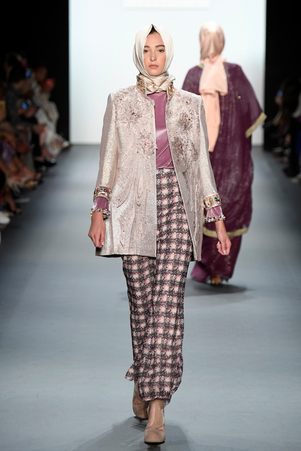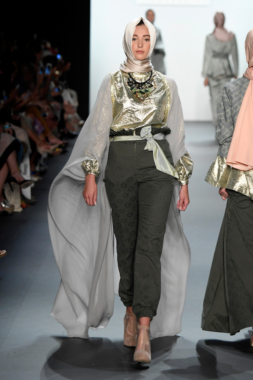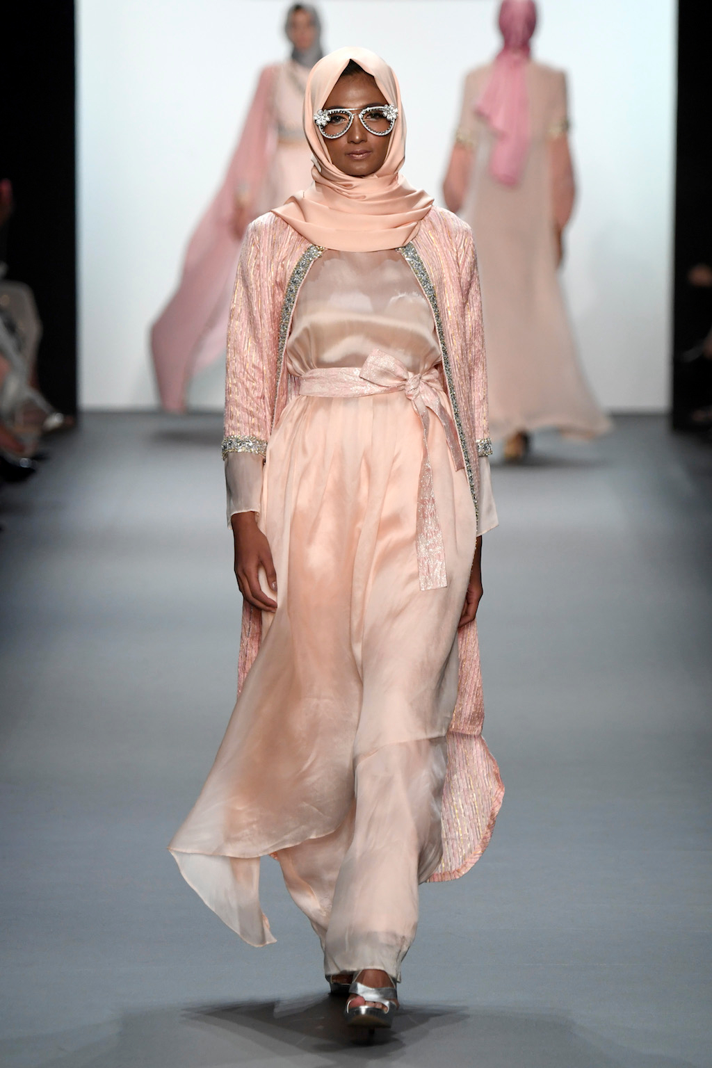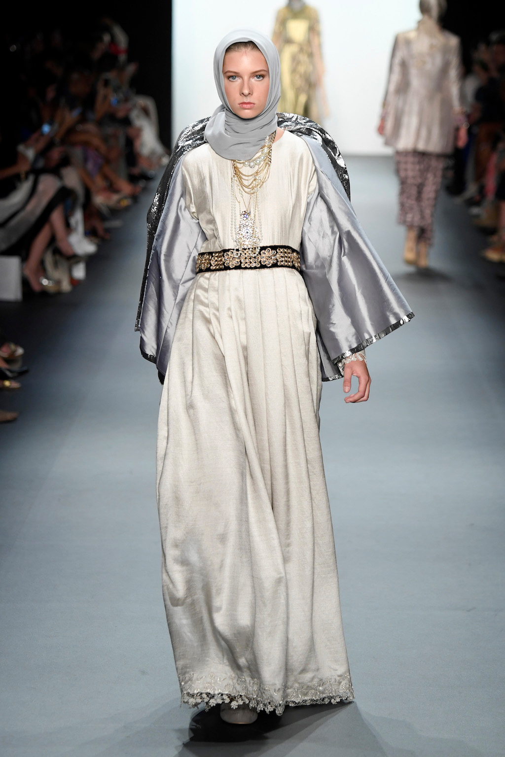 Crowds gathered in excess outside the Skylight at Moynihan Station in New York City on a balmy Monday night to see the return of Anniesa Hasibuan to New York Fashion Week. The Jakarta-based designer is known for her unique women’s evening wear, which combines classic techniques, Indonesian inspiration, with a distinct Muslim tradition. Updating the Hijab with crystal-crusted eyewear, pajama pants and chic layering, Anniesa took the headscarf and made it a high-fashion runway mainstay.