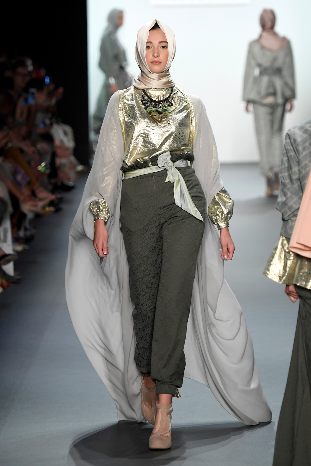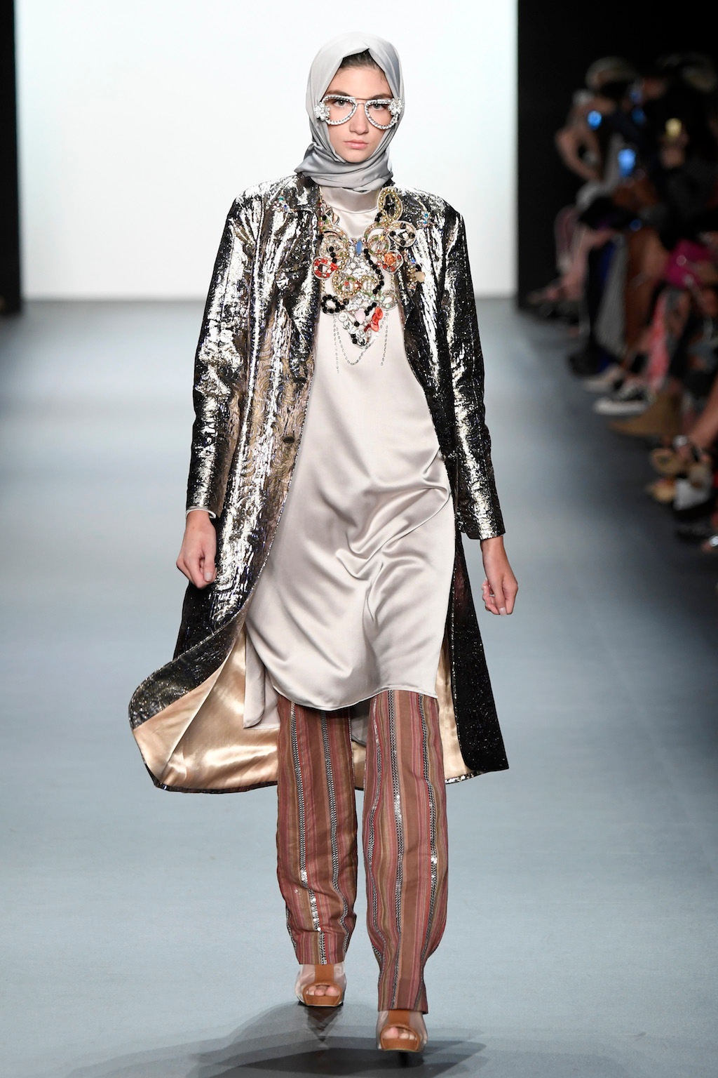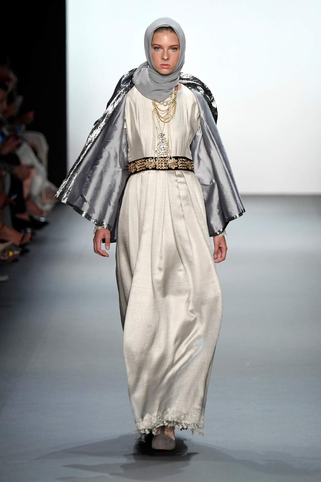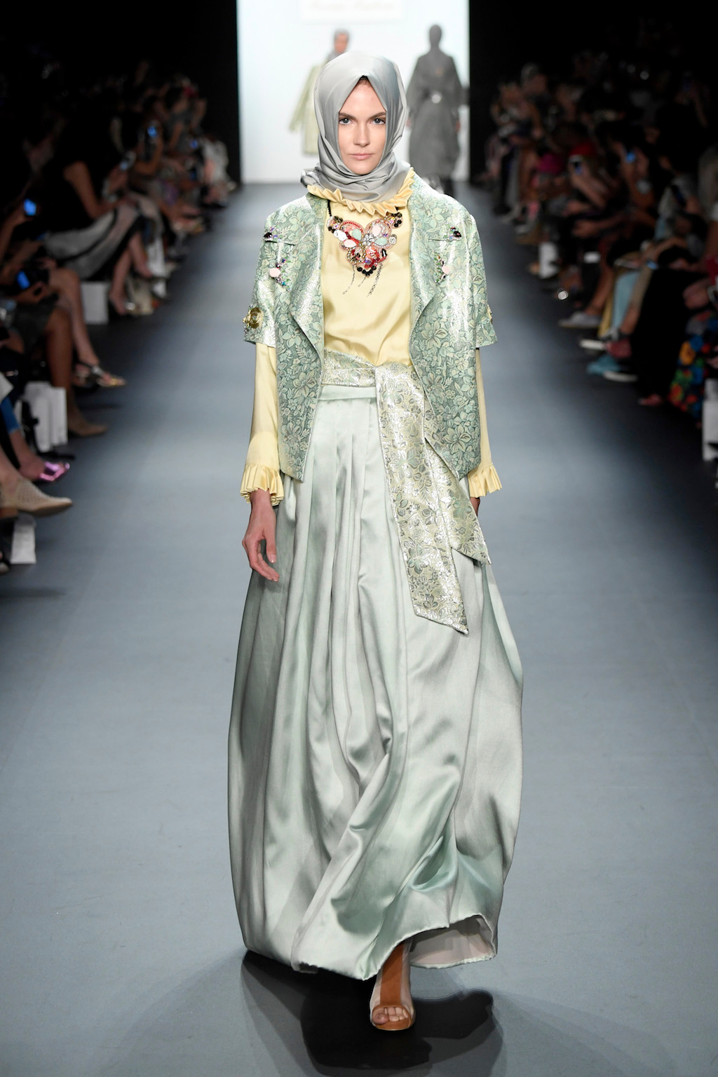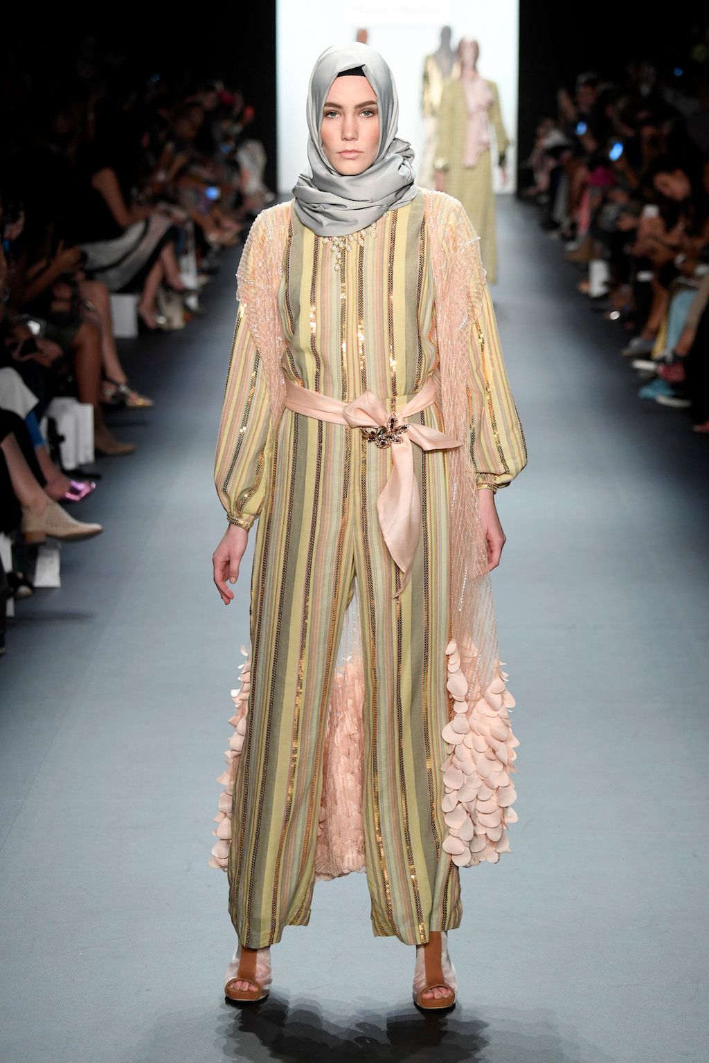 Crowds gathered in excess outside the Skylight at Moynihan Station in New York City on a balmy Monday night to see the return of Anniesa Hasibuan to New York Fashion Week. The Jakarta-based designer is known for her unique women’s evening wear, which combines classic techniques, Indonesian inspiration, with a distinct Muslim tradition. Updating the Hijab with crystal-crusted eyewear, pajama pants and chic layering, Anniesa took the headscarf and made it a high-fashion runway mainstay.