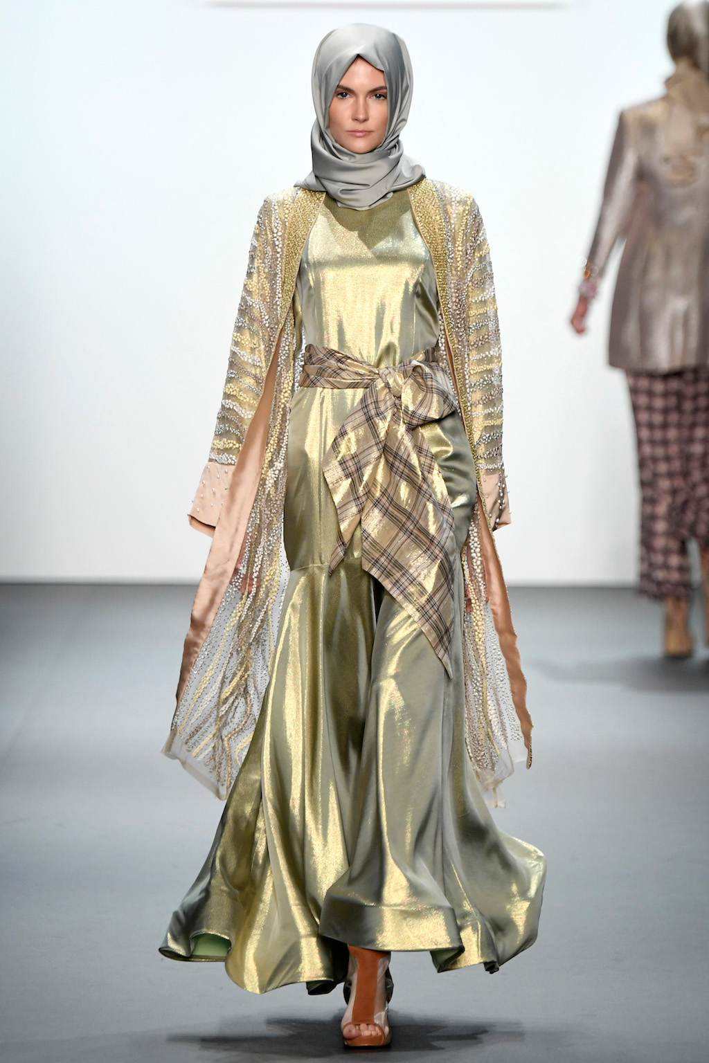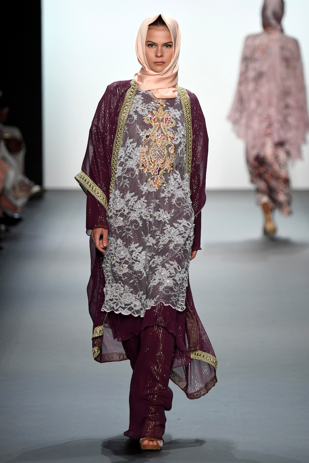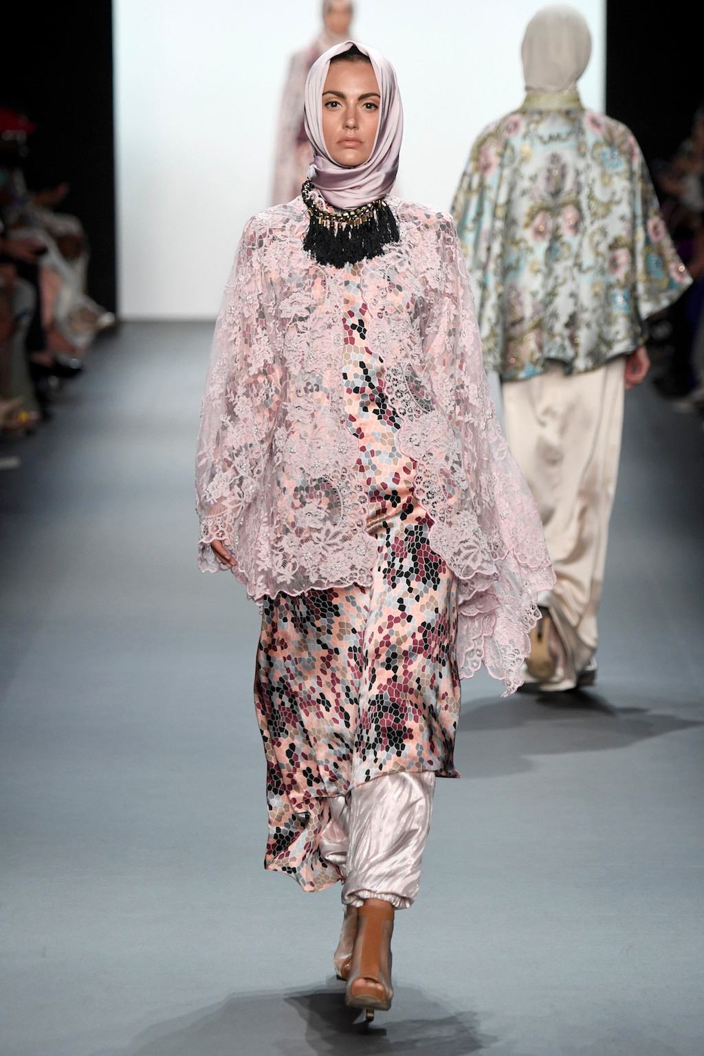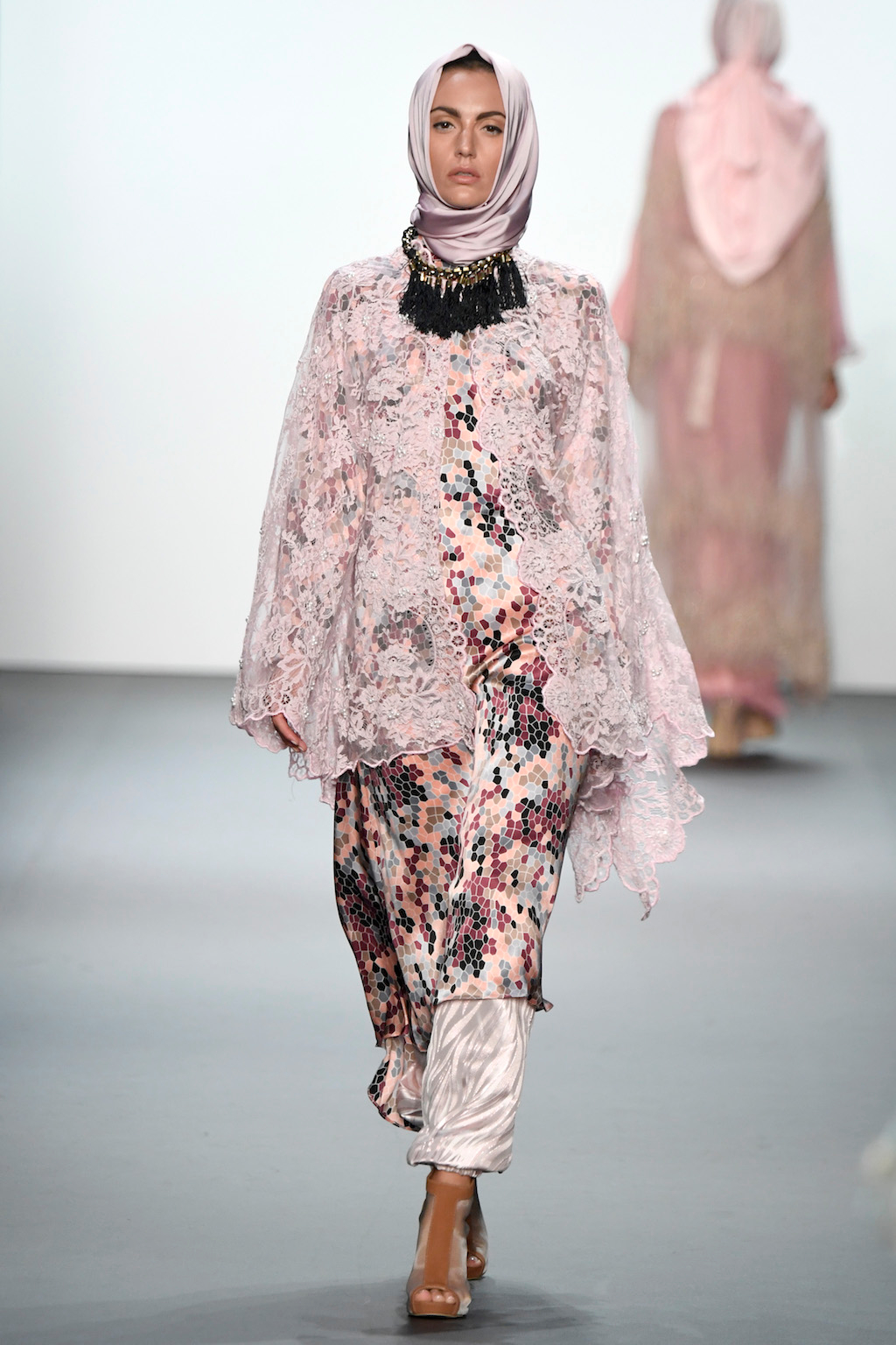 Crowds gathered in excess outside the Skylight at Moynihan Station in New York City on a balmy Monday night to see the return of Anniesa Hasibuan to New York Fashion Week. The Jakarta-based designer is known for her unique women’s evening wear, which combines classic techniques, Indonesian inspiration, with a distinct Muslim tradition. Updating the Hijab with crystal-crusted eyewear, pajama pants and chic layering, Anniesa took the headscarf and made it a high-fashion runway mainstay.