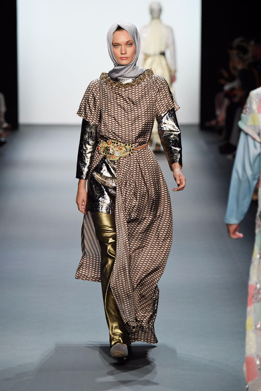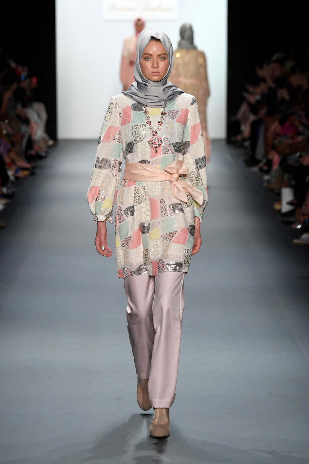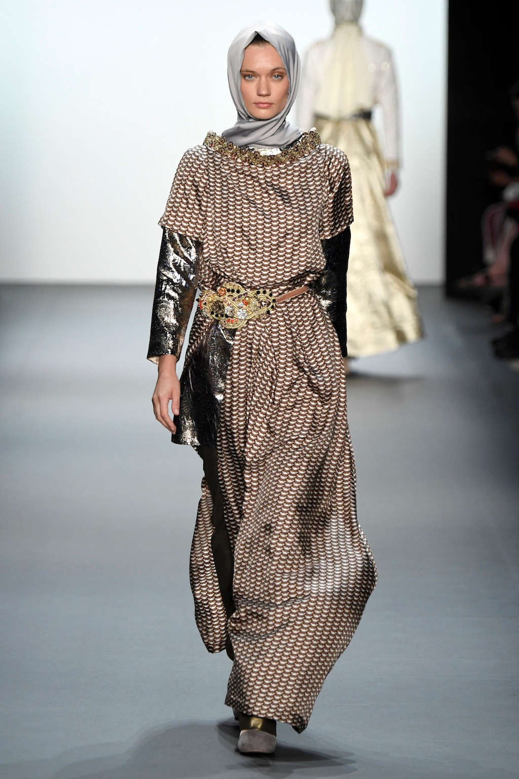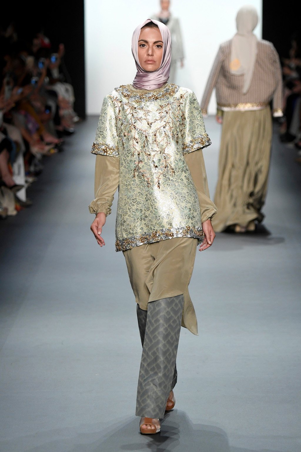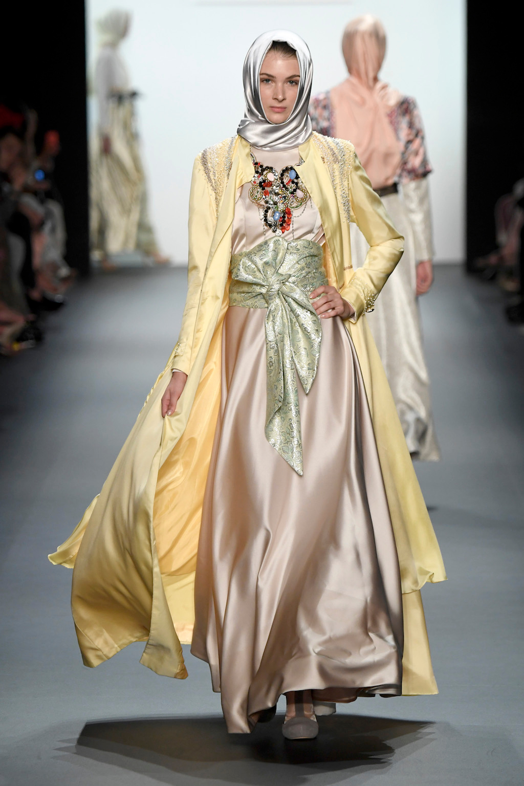 Crowds gathered in excess outside the Skylight at Moynihan Station in New York City on a balmy Monday night to see the return of Anniesa Hasibuan to New York Fashion Week. The Jakarta-based designer is known for her unique women’s evening wear, which combines classic techniques, Indonesian inspiration, with a distinct Muslim tradition. Updating the Hijab with crystal-crusted eyewear, pajama pants and chic layering, Anniesa took the headscarf and made it a high-fashion runway mainstay.