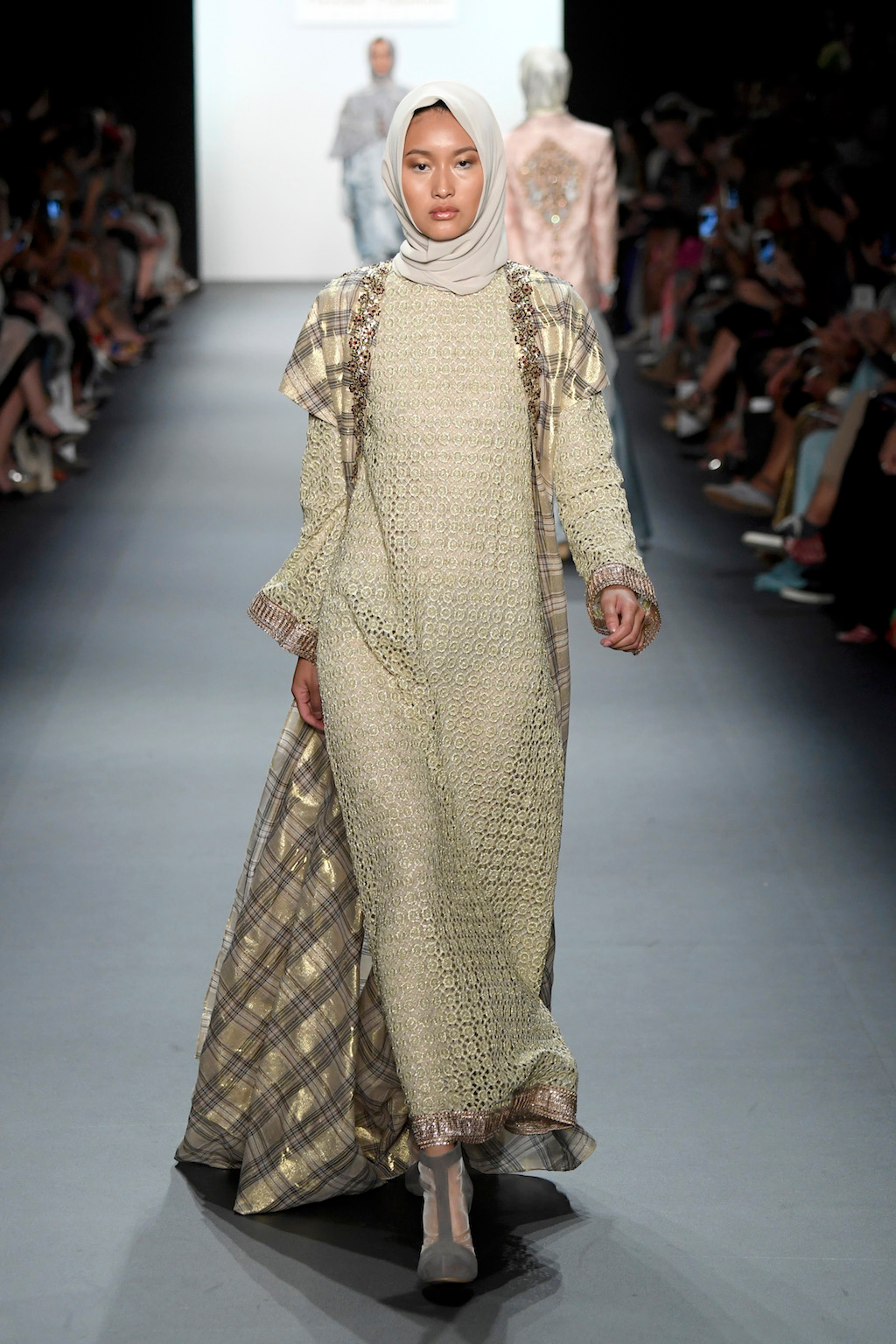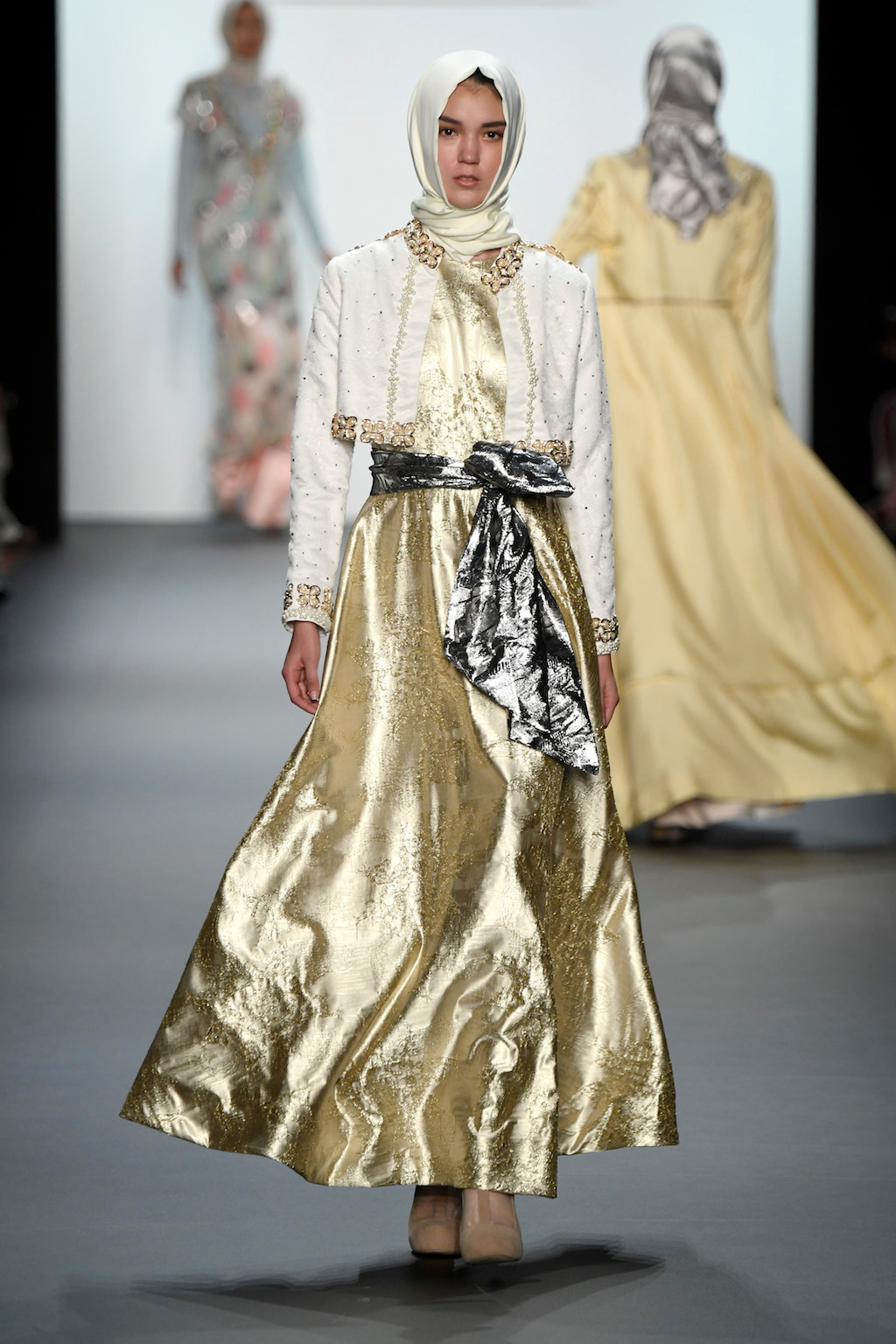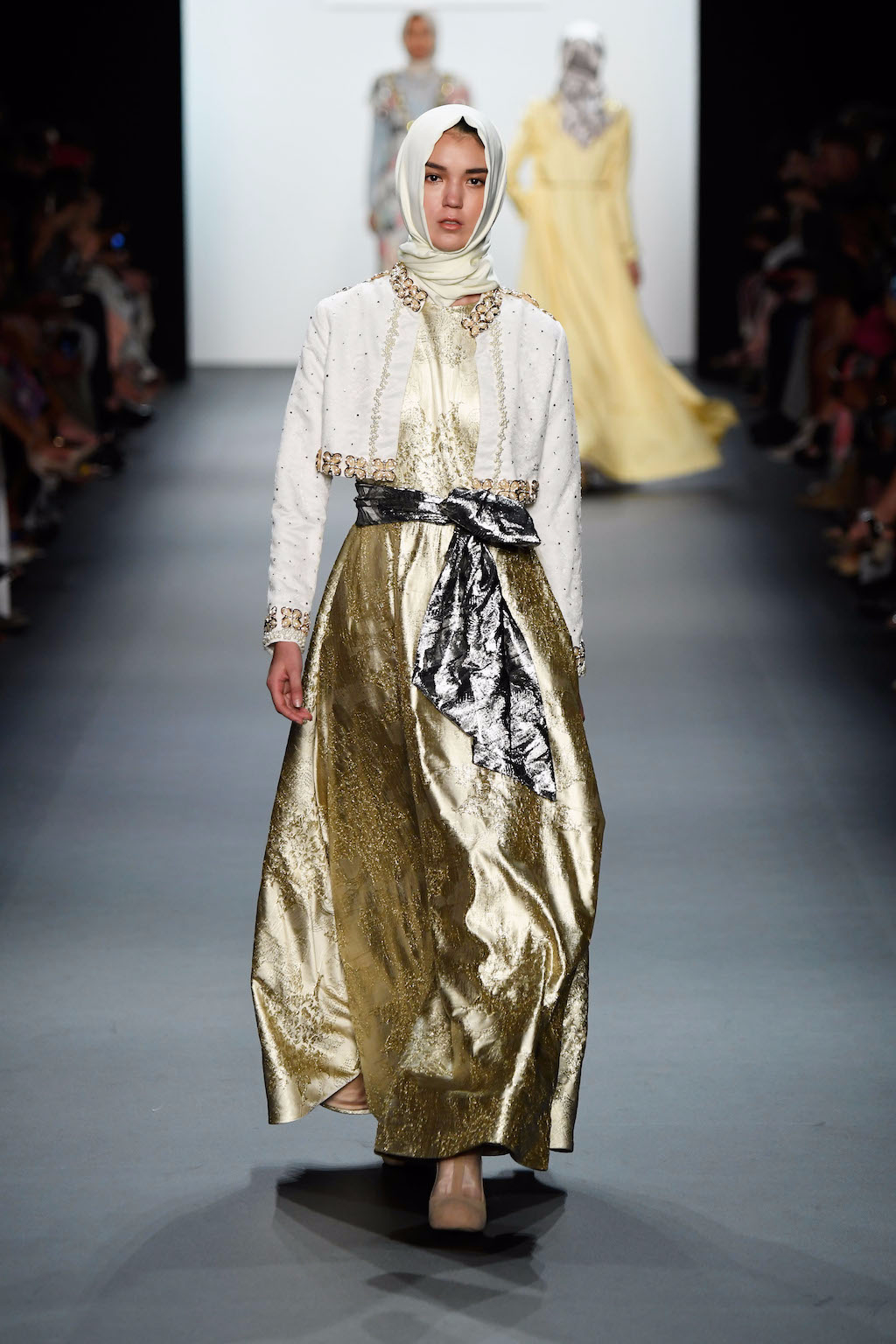 The visual impact of Anniesa’s show was truly felt as she made her way down the length of the runway. The collection truly worthy of the crowds extended cheering. Making the headscarf an accessible and wearable feature in this collection brought together what was once perceived as two different worlds. Western glamour blended with Muslim tradition and Indonesian ethnic flair truly made worlds come together, complete with pearls, silk and gold.