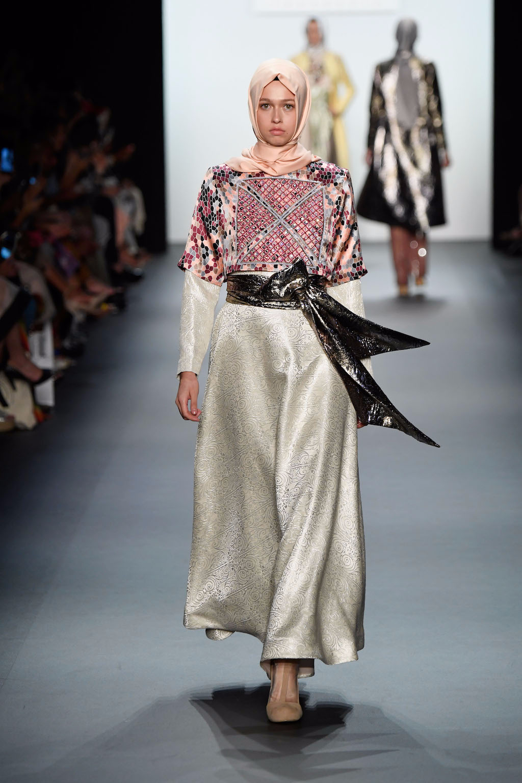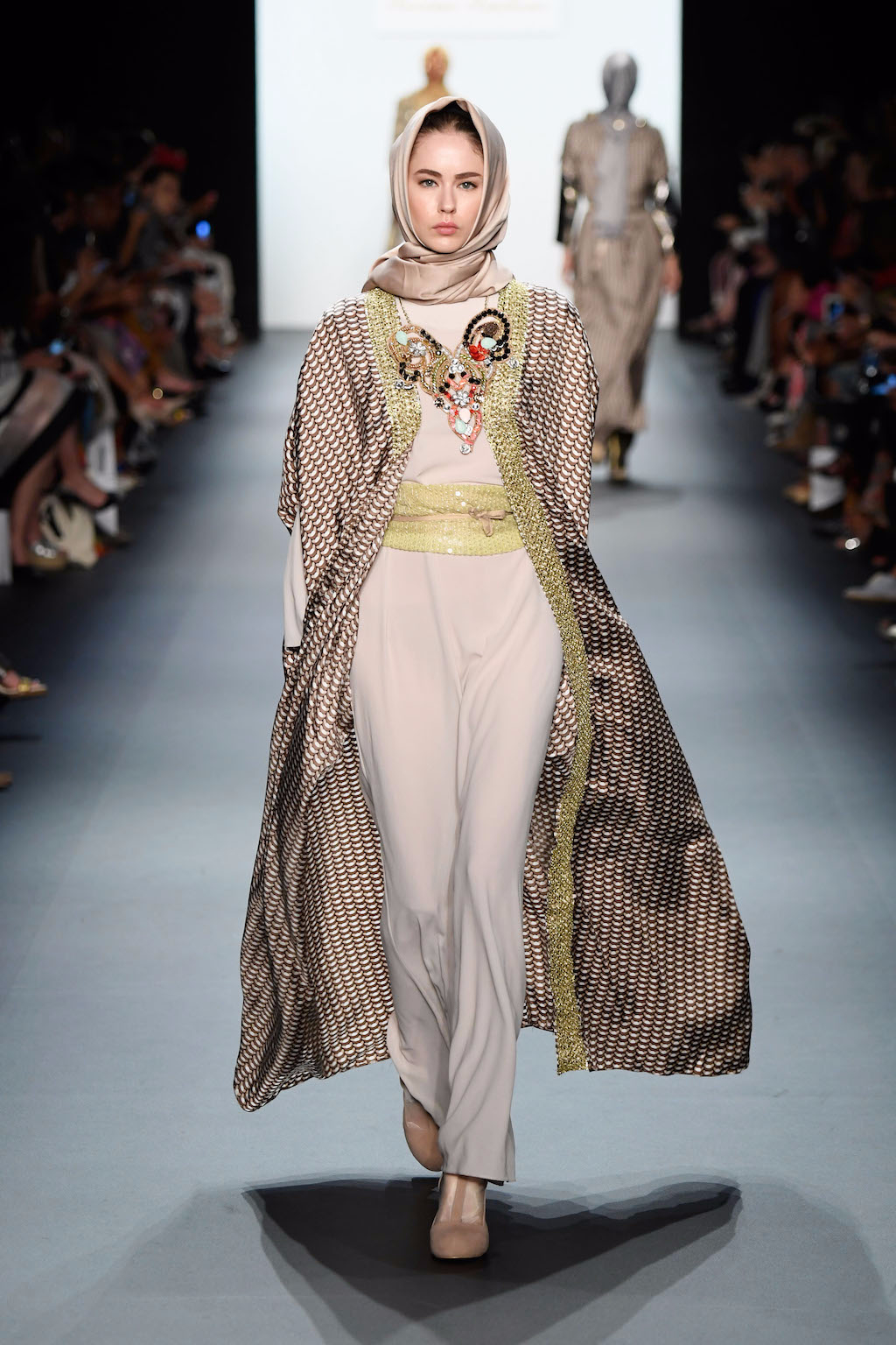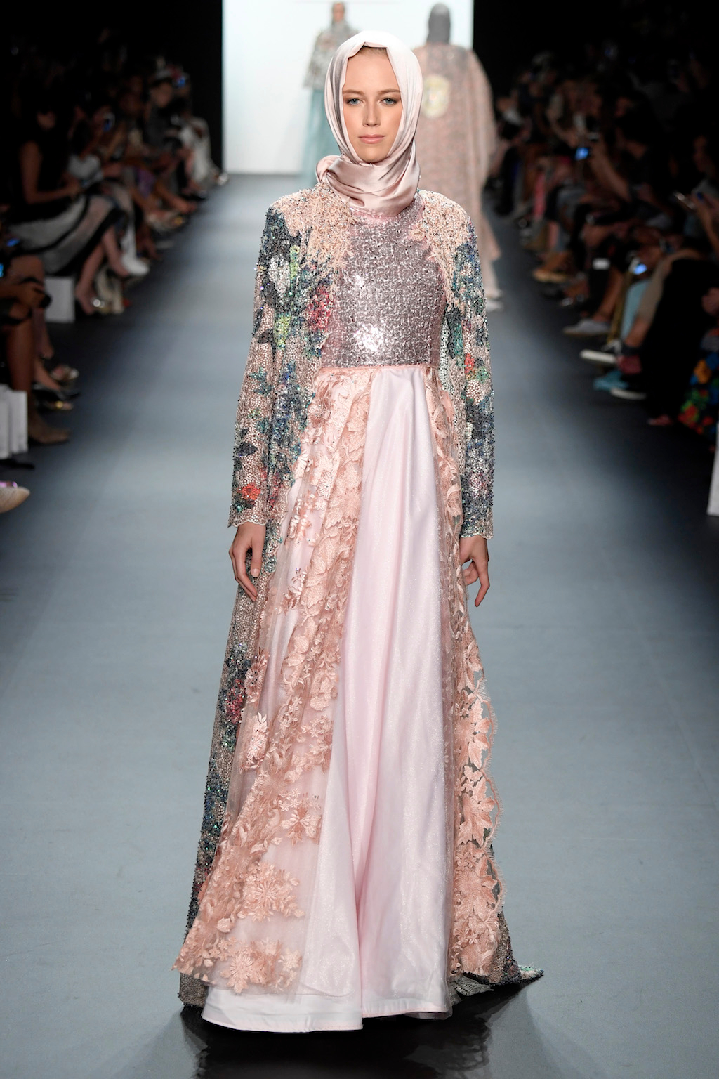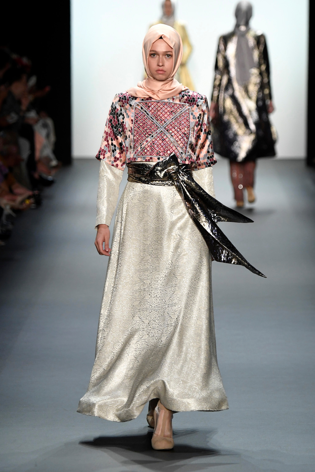 The visual impact of Anniesa’s show was truly felt as she made her way down the length of the runway. The collection truly worthy of the crowds extended cheering. Making the headscarf an accessible and wearable feature in this collection brought together what was once perceived as two different worlds. Western glamour blended with Muslim tradition and Indonesian ethnic flair truly made worlds come together, complete with pearls, silk and gold.