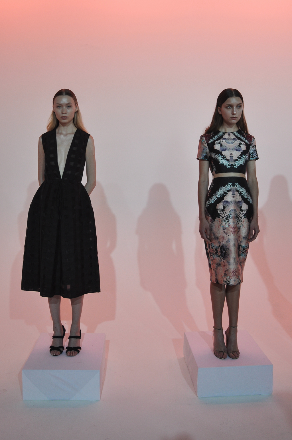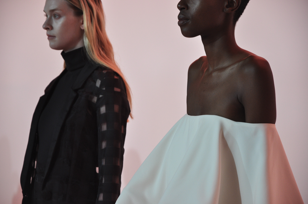 Inspired by “irrational grandiosity in a time of despair”, the line is a cultivated detachment from reality. The dreamy landscape of flowing fabrics, organza, silk and crepe made up the wistful line with pops of bone, blush and mint. From a feminine sleeveless crepe duster jacket in rose (The Stella) to silk gowns mesh, the line sparked hints of romance and ultra femininity.