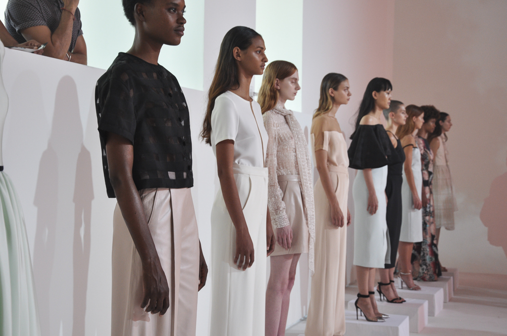 Models looked dewy and fresh with makeup by MAC and makeup artist Chantel Miller, with soft, shiny locks by Marco Vogt and Aveda. The new designer (she debuted her first autumn/winter in 2015) inspires women to be classically beautiful with a twist. Bass, originally from Tennessee, studied fashion at FIT, and was named designer of the year after graduation. She has worked at Bill Blass, Elie Tahari, Eugenia Kim and Marc Jacobs.